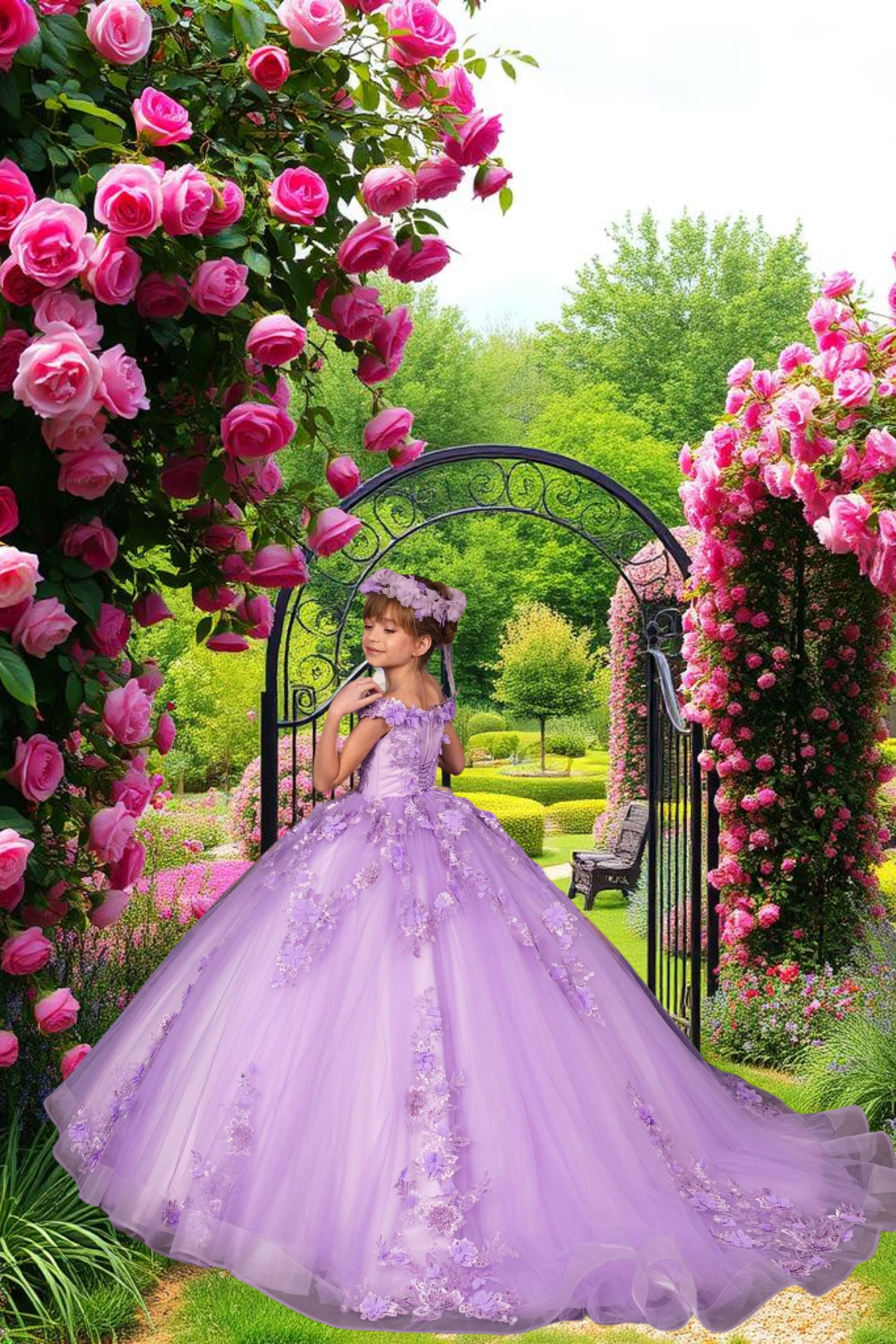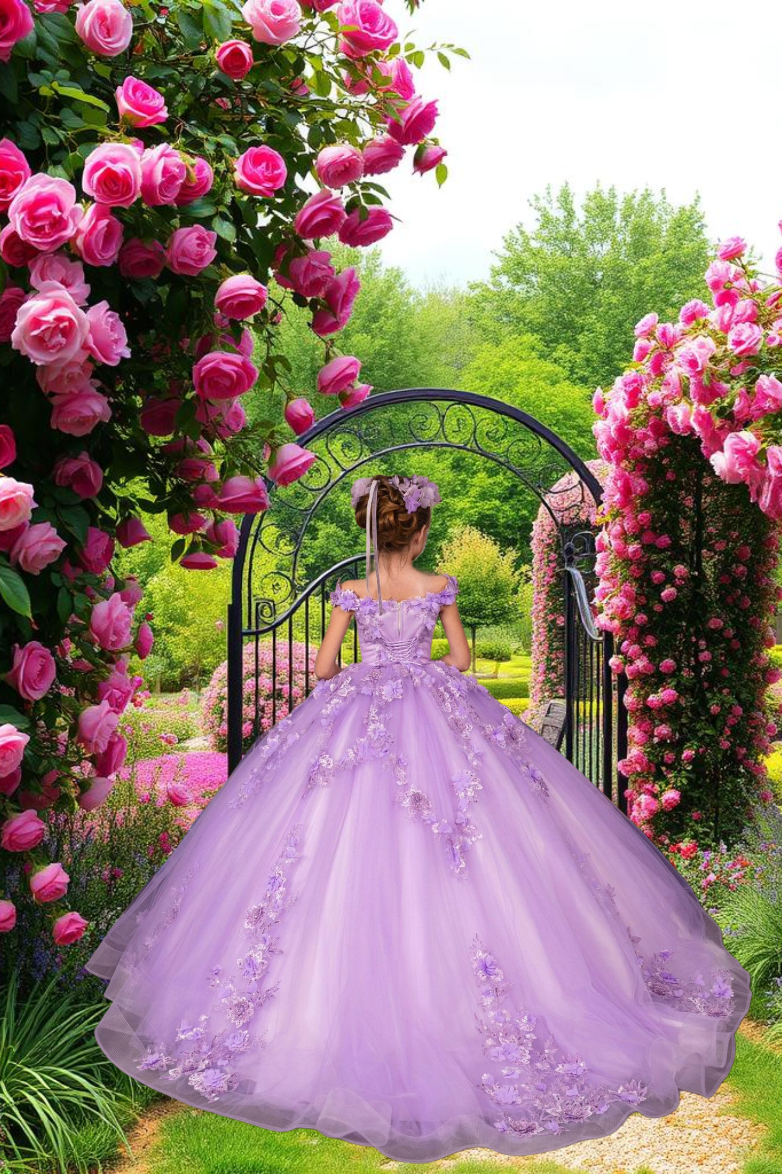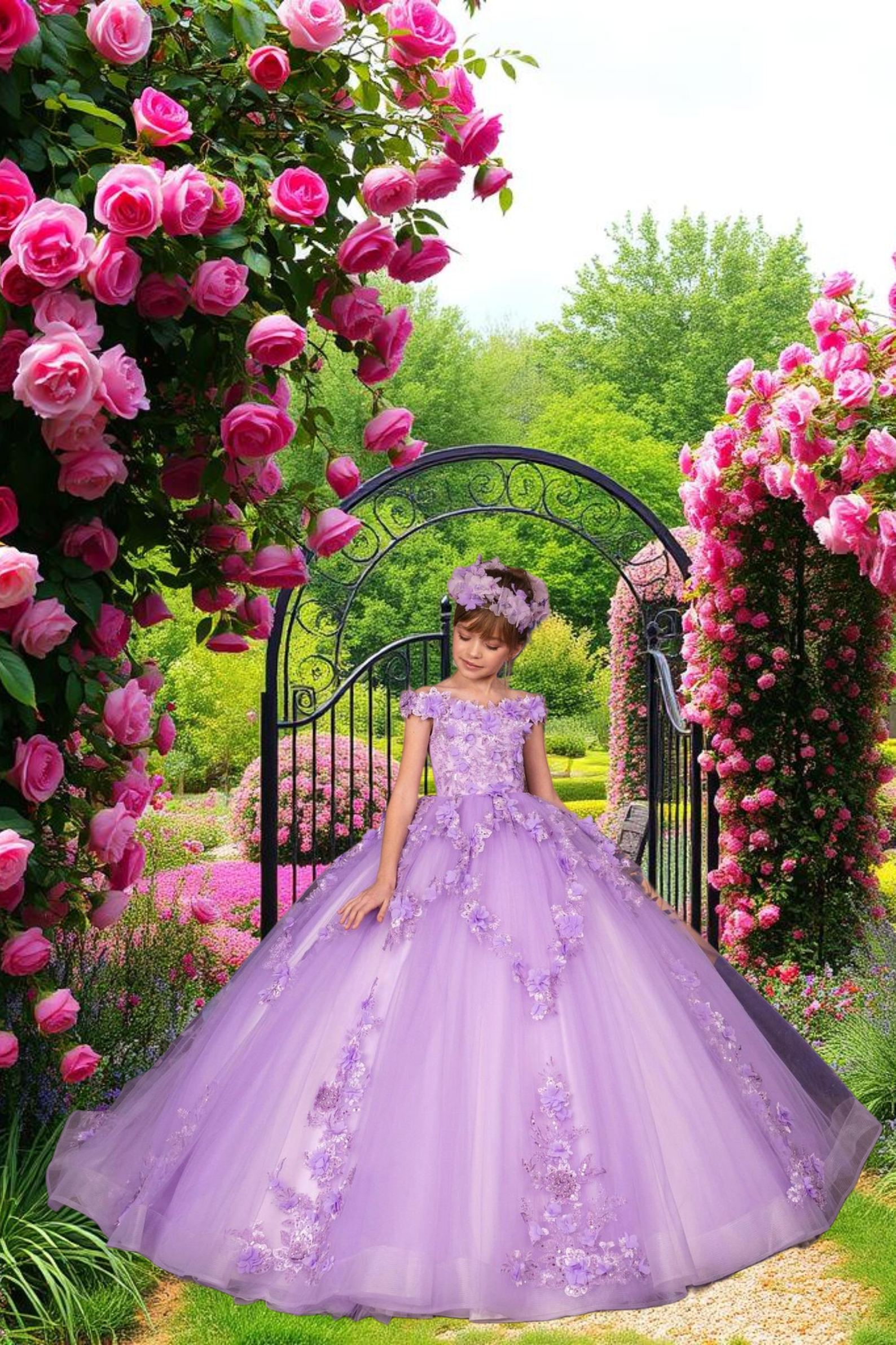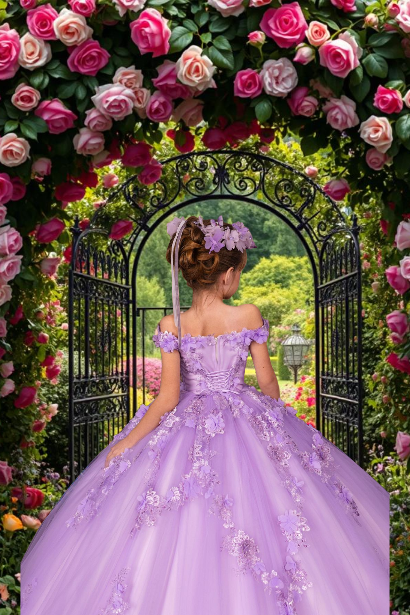 The Aurélia Lilac Ball Gown by Fashion Couture is a breathtaking creation of elegance and fantasy. Crafted in layers of ethereal tulle with delicate 3D floral appliqués, this couture masterpiece blooms with romance and sophistication. The off-shoulder neckline and voluminous skirt create a regal silhouette, while shimmering accents catch the light with every graceful step. Perfect for pageants, father-daughter dances, or luxury celebrations, Aurélia embodies the beauty of a fairytale brought to life. Dress comes in Ivory as well.