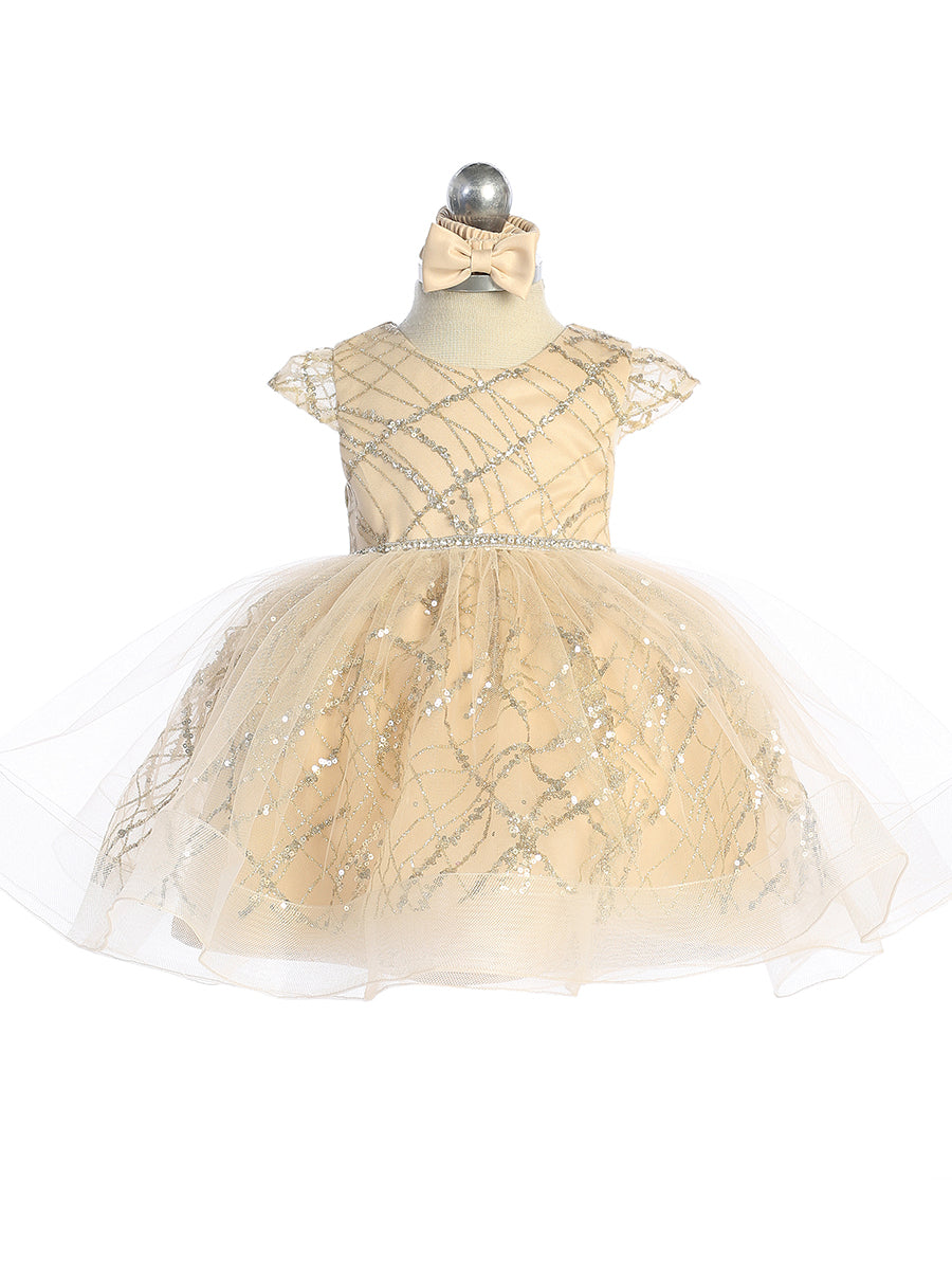 The Aurora Glitz Dress is a sparkling statement piece, perfect for your little one’s most memorable occasions. Designed with shimmering sequin detailing over a soft tulle overlay, this dress features flutter cap sleeves, a gem-accented waistline, and a voluminous layered skirt that creates a fairytale-worthy silhouette. It’s fully lined for comfort, includes a secure back zipper, and ties at the back for a customizable fit. Ideal for birthdays, flower girl roles, holiday events, and special celebrations. Comes with a matching satin bow headband for a complete look. Available in 4 elegant colors.