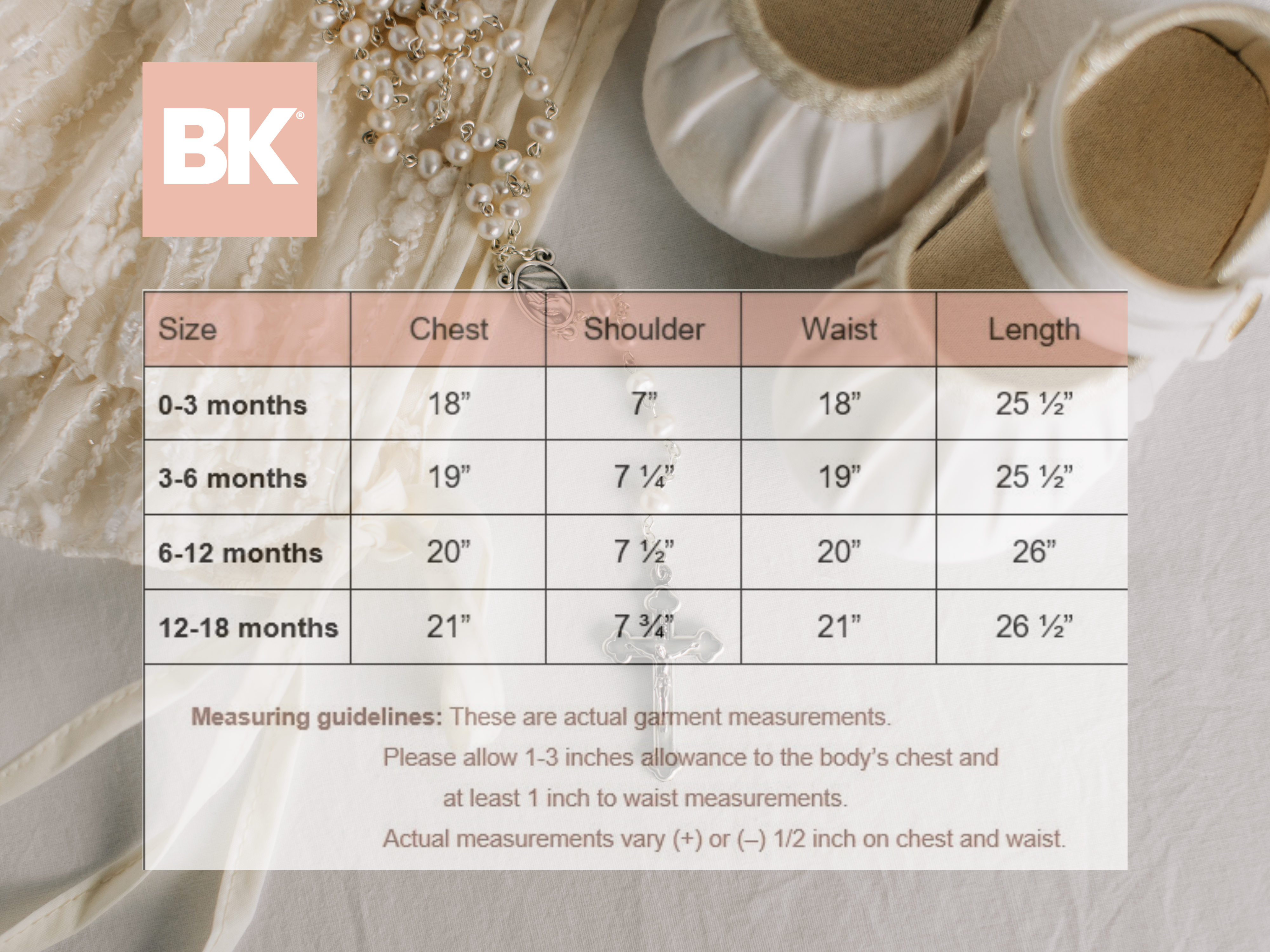 The Charlotte Christening Gown is the epitome of grace, designed with intricately embroidered lace, shimmering sequins, and timeless craftsmanship. The soft sheer long sleeves add an elegant touch, while the flowing skirt drapes beautifully for a picture-perfect silhouette. A delicate satin bow at the back ties the look together, and the included matching bonnet completes this stunning ensemble. Made in the U.S.A., this dress is a treasured keepsake for generations.
