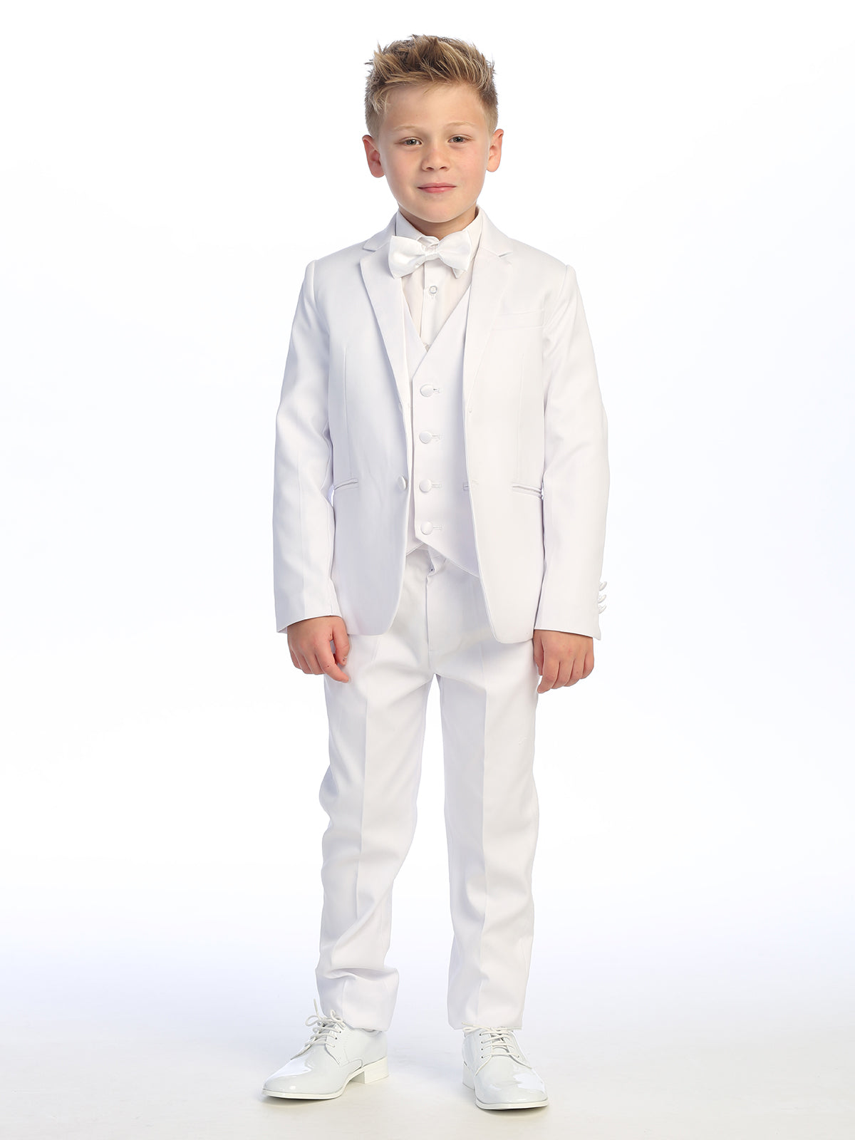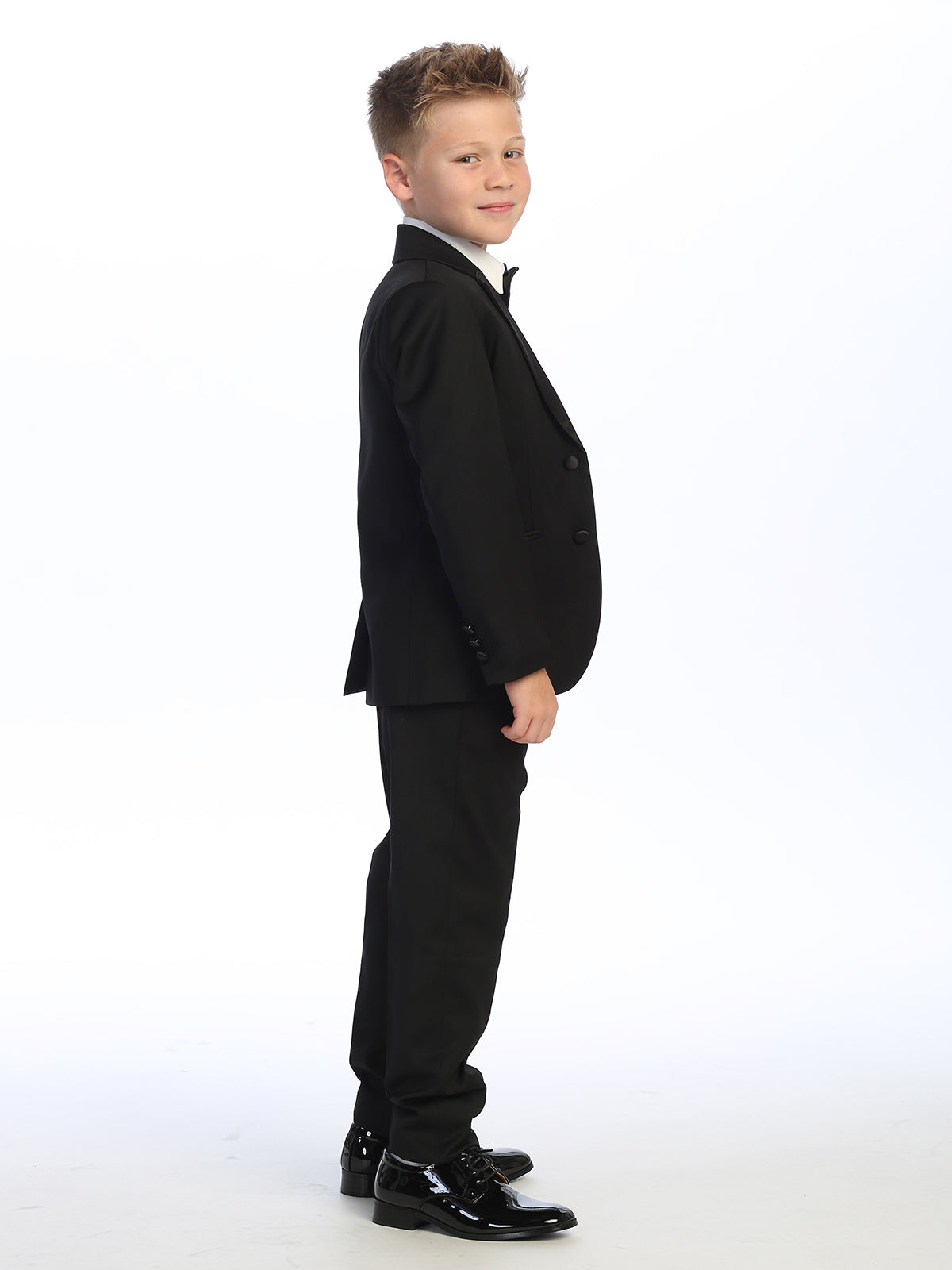 Dress your little gentleman in timeless elegance with this classic 5-piece boys’ tuxedo, perfect for weddings, First Communion, pageants, and formal events. This sophisticated ensemble includes a tailored tuxedo jacket with satin lapels, matching dress pants, a crisp white dress shirt, a buttoned vest, and a coordinating bow tie—everything he needs for a polished, picture-perfect look. Crafted from high-quality fabric for comfort and durability, this tuxedo ensures he looks sharp and feels confident at every special occasion. Complete the look with coordinating dress shoes, available for purchase separately.