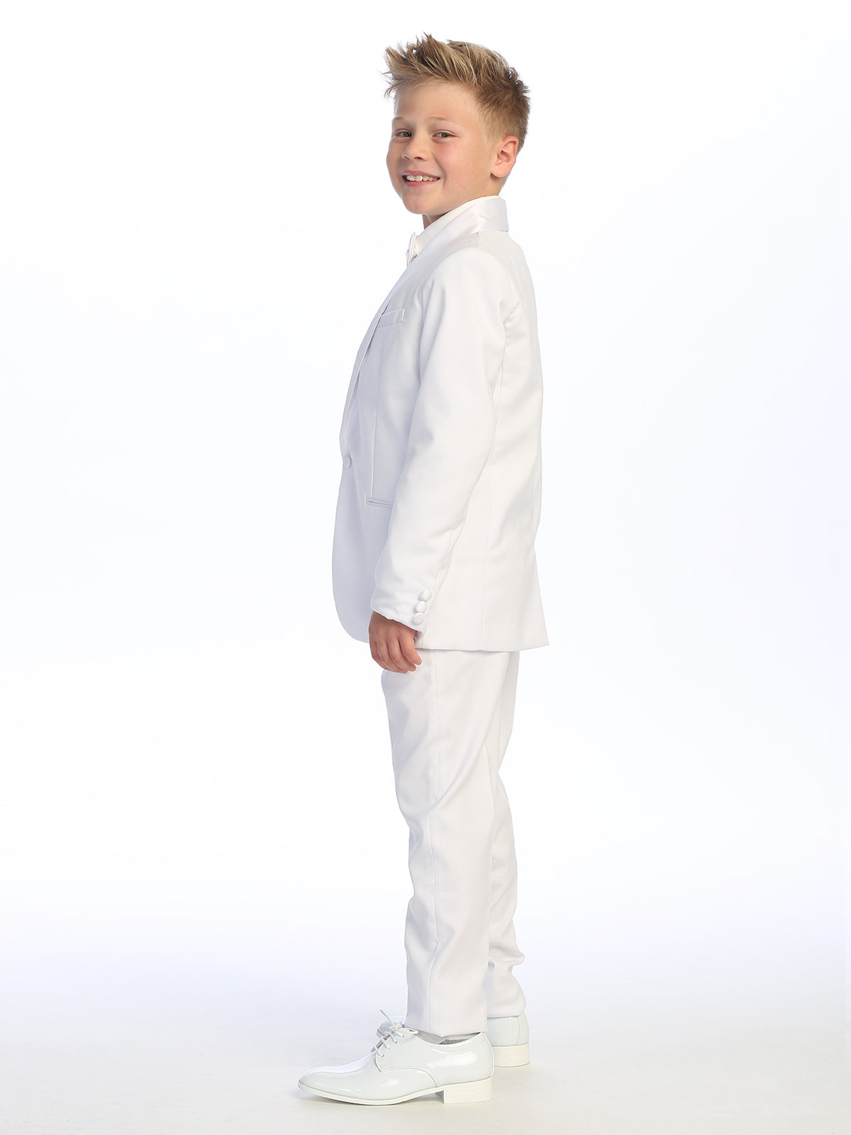 Dress your little gentleman in sophistication with this classic boys' tuxedo suit, available in timeless black or pristine white. Designed for elegance and comfort, this formal outfit includes a sleek jacket with satin lapels, a matching vest, tailored trousers, a crisp dress shirt, and a coordinating bow tie. Perfect for weddings, communions, formal events, and special occasions, this stylish tuxedo ensures a polished and refined look.