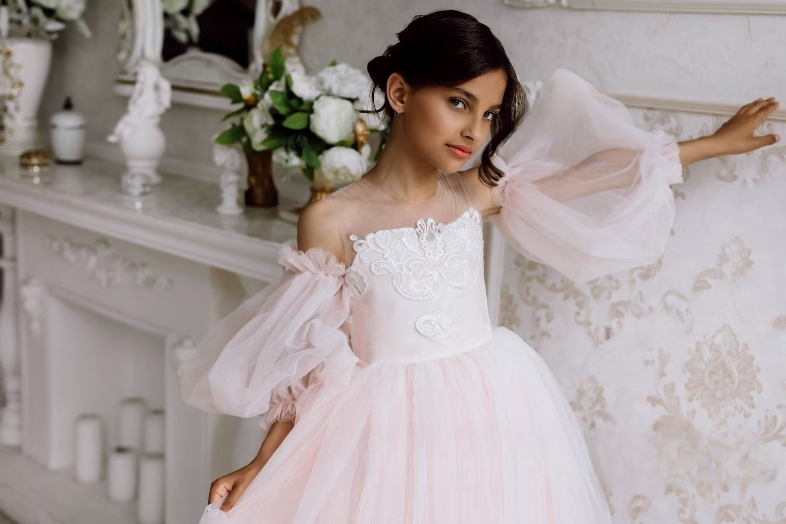Elora Flower Girl Satin Tulle Dress | Blush Kids