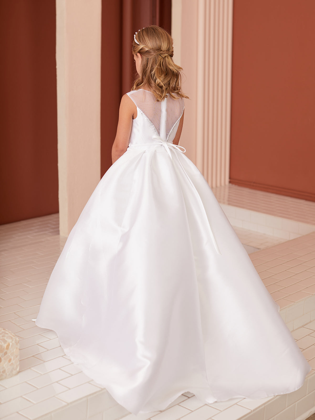 Get ready to dazzle in our Diamond Collection - Nova Girls Communion Mikado Satin Dress! This stunning Mikado Satin Dress features a Deep V Illusion Back adorned with sparkling rhinestones, making it the perfect choice for your special day. And the best part? You can get free shipping on this luxurious dress when you shop at Blush Kids Luxury Couture. Make a statement and stand out in style with the Nova Girls Communion Mikado Satin Dress - a true gem in our Diamond Collection.