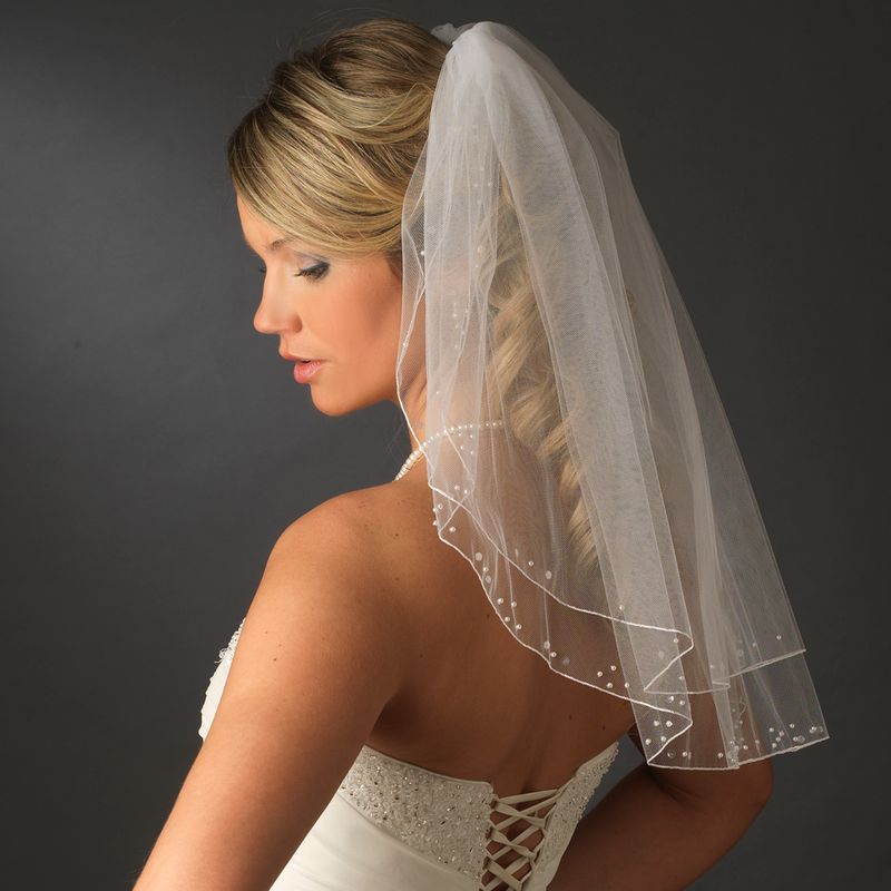 The sequins and pearls scattered throughout the double layers of soft tulle add a touch of sparkle and shine. The scalloped edges give this veil a delicate, feminine look she'll adore. It's the perfect accessory to make her communion outfit complete.