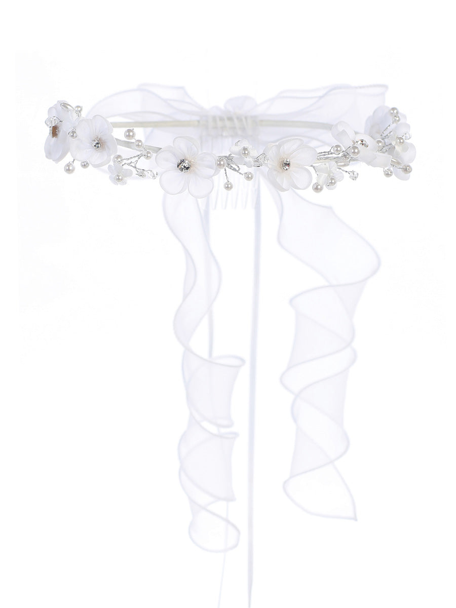 Make your little girl the princess of the wedding in The Priscilla Flower Girl Ivory Headband. This stunning headband features an elegant ivory flower with a ribbon twirl at the back that will have her feeling like royalty as she walks down the aisle.