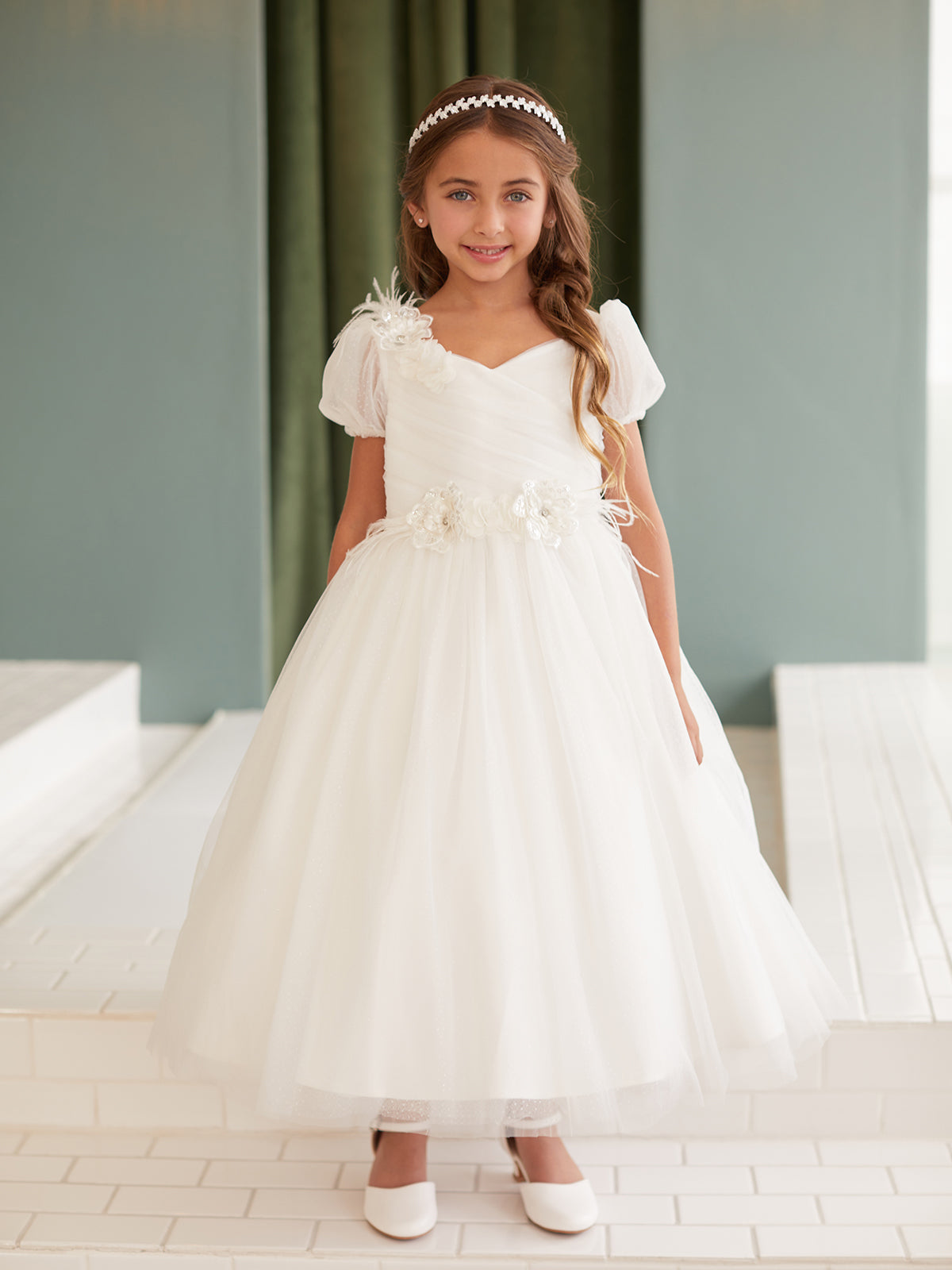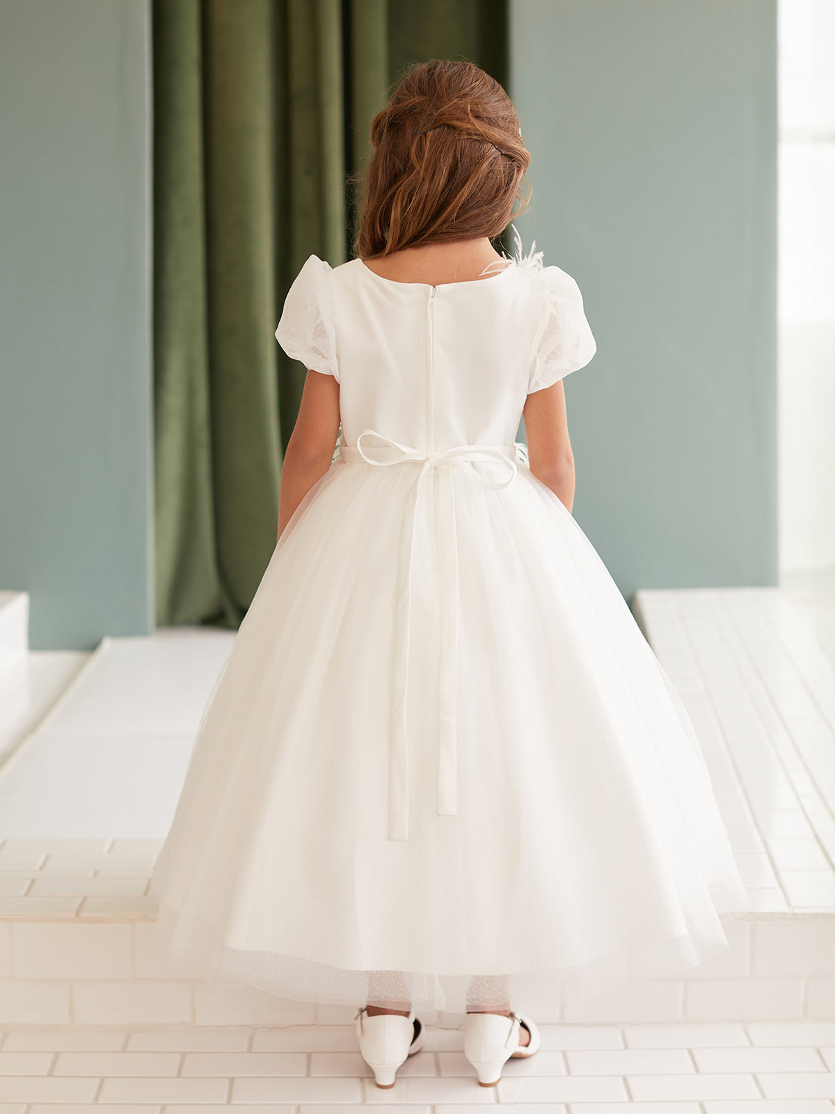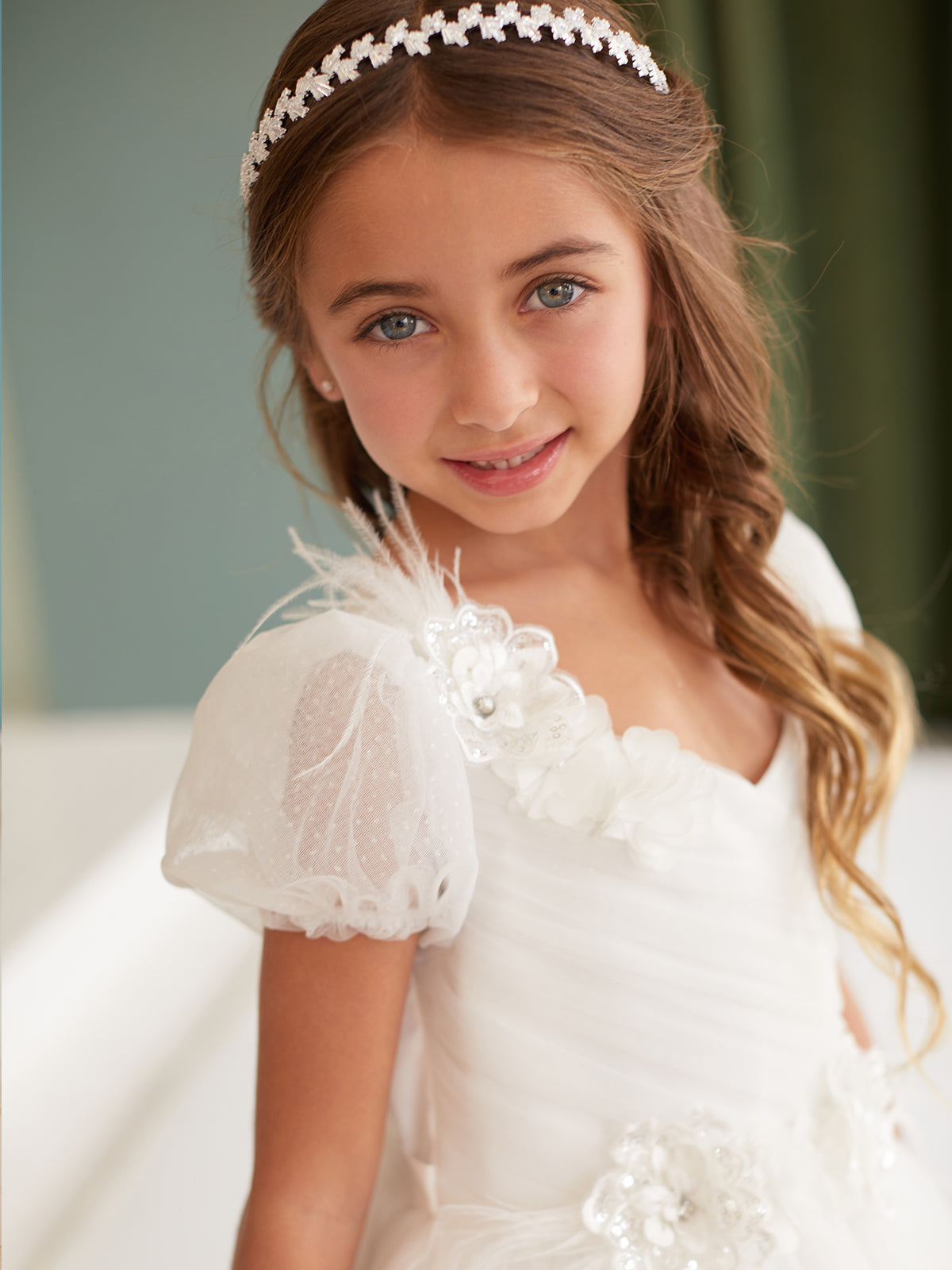 Girls Communion Gown with Exquisite 3D Flowers and Feathers