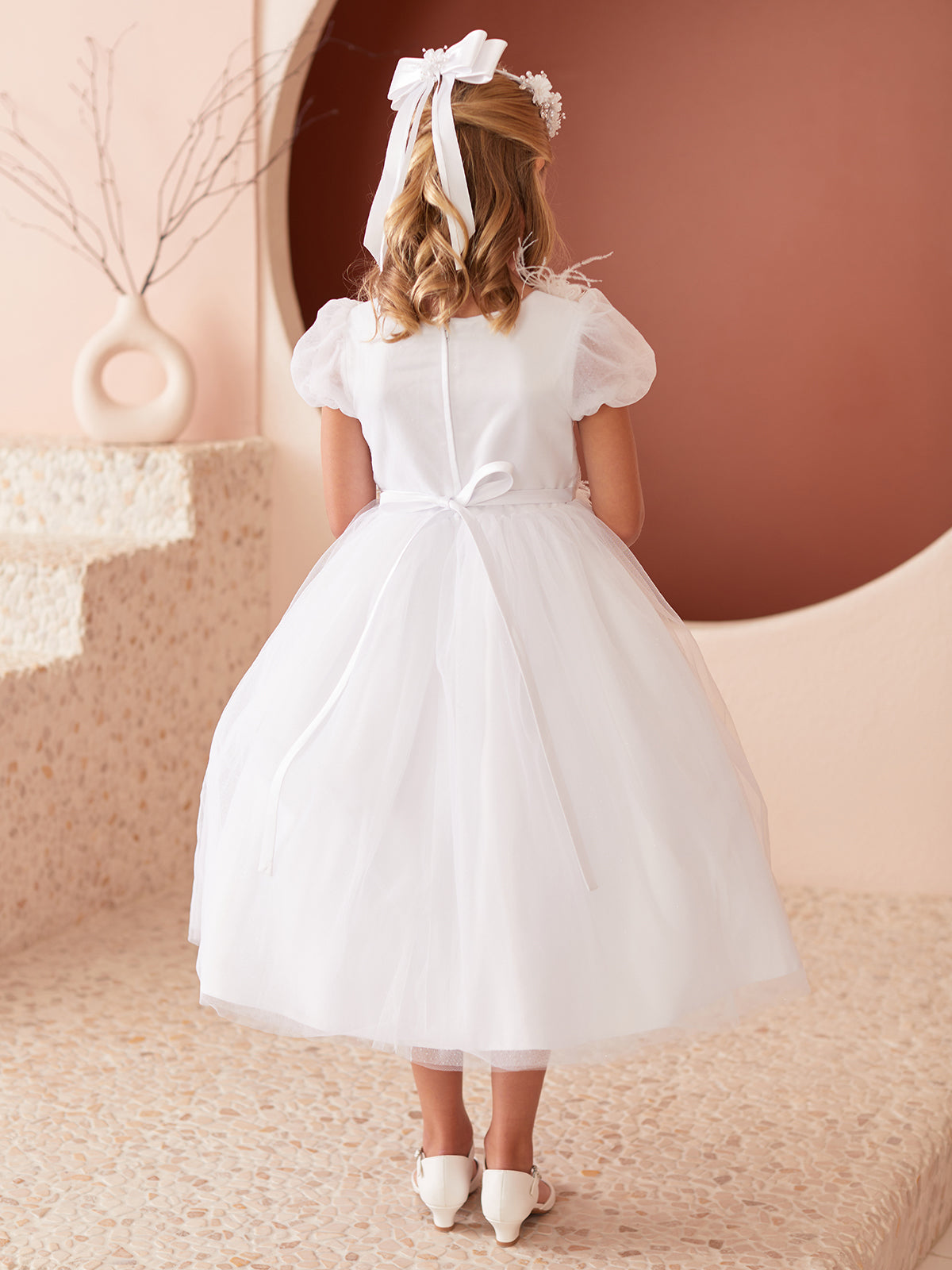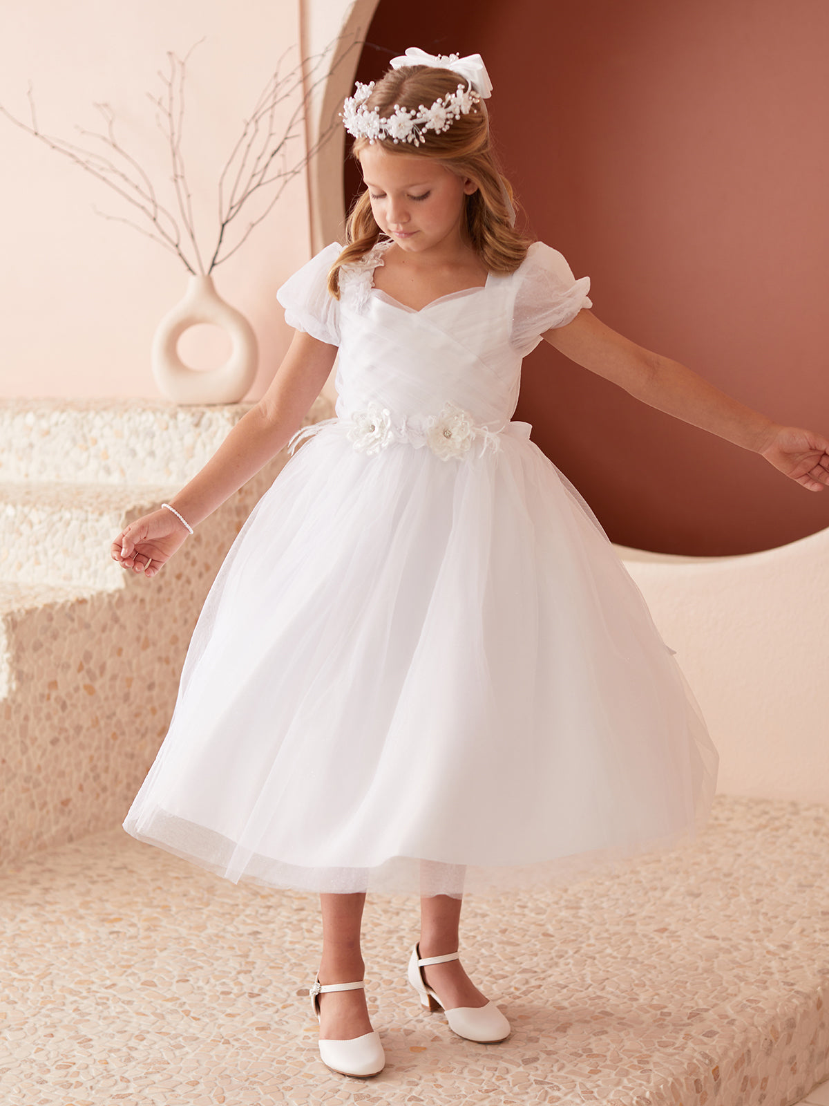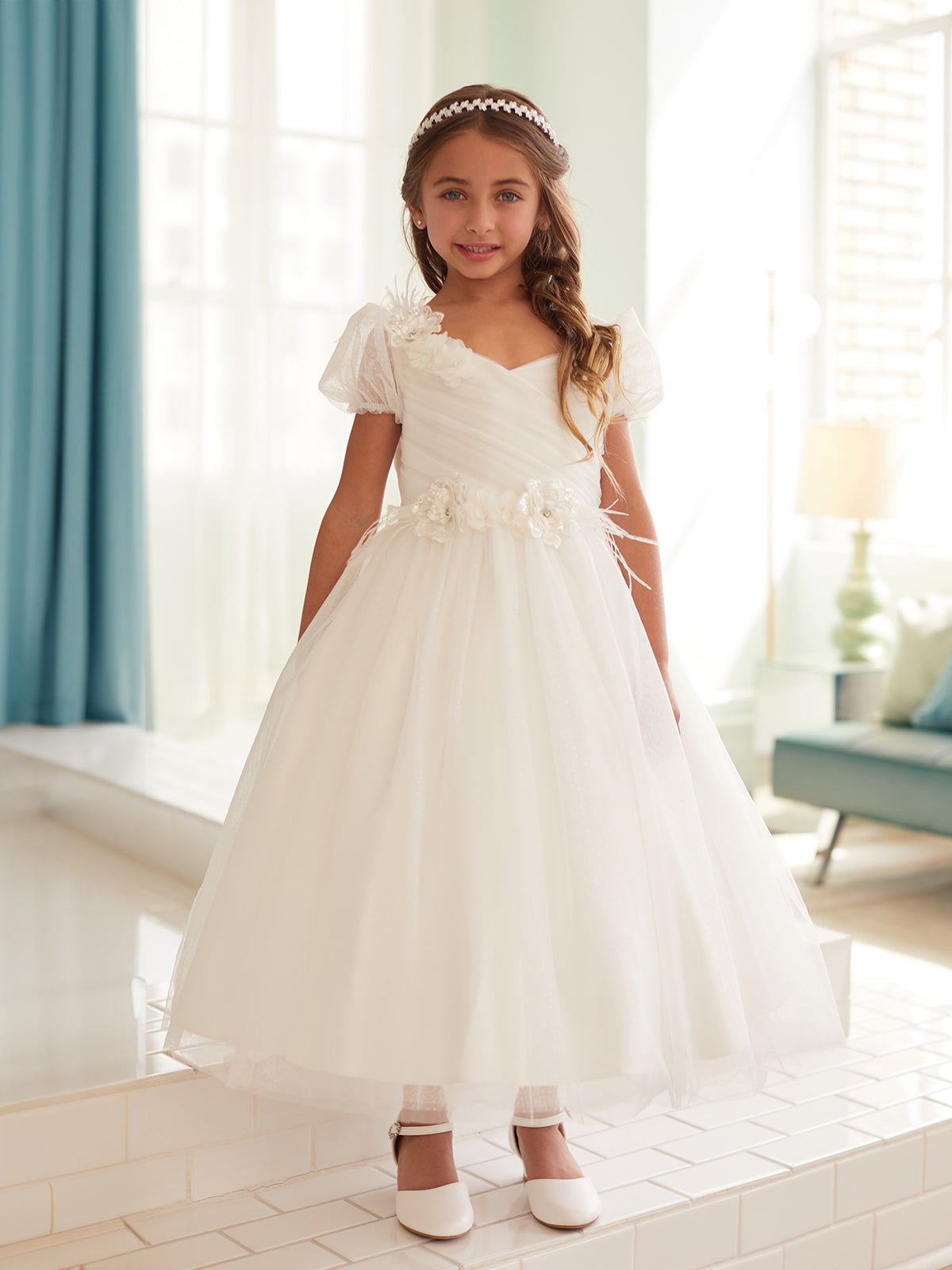 Girls Communion Gown with Exquisite 3D Flowers and Feathers