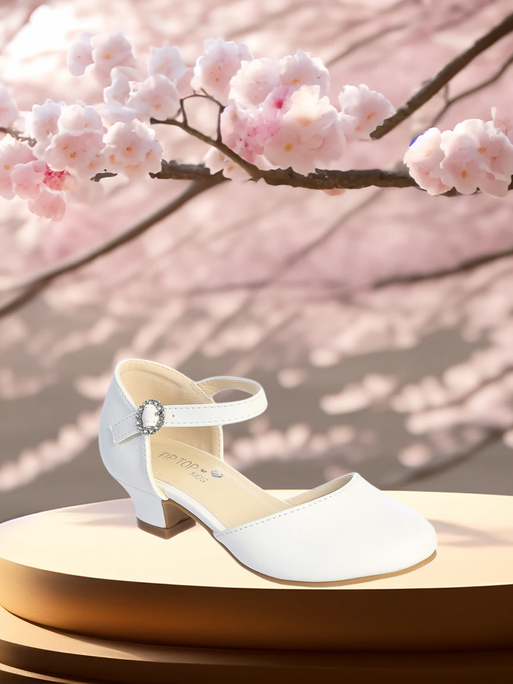 Girls Ivory or White Dress Shoe with Crystal Buckle