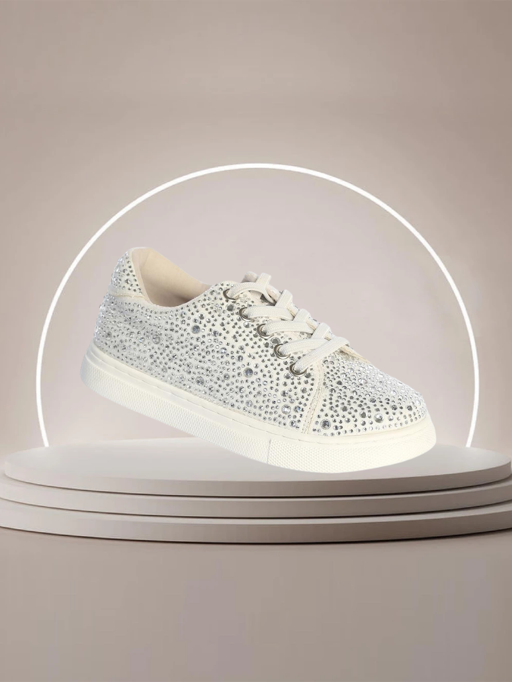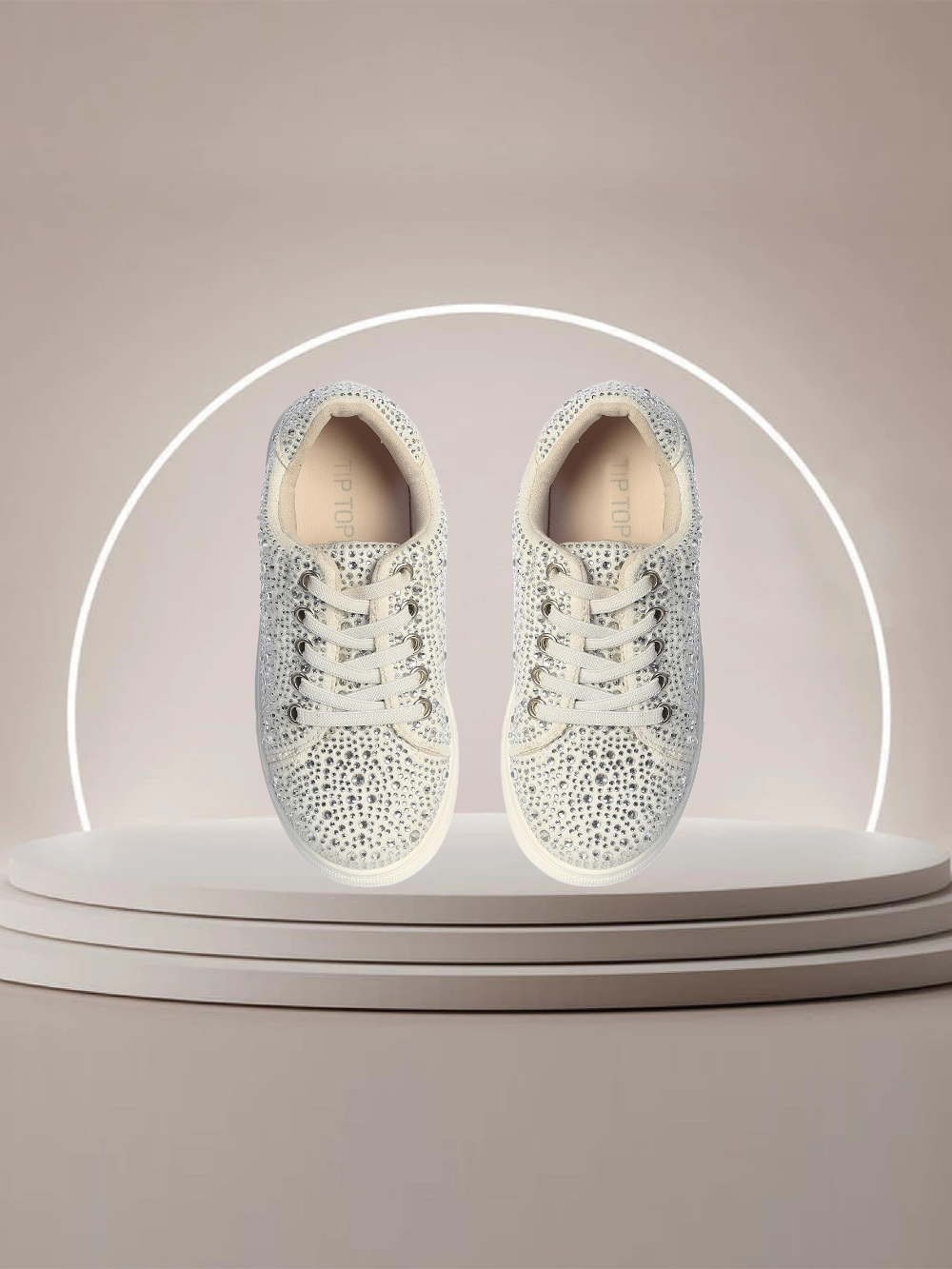 Girls Rhinestone Dress Sneakers – White Sparkle Comfort