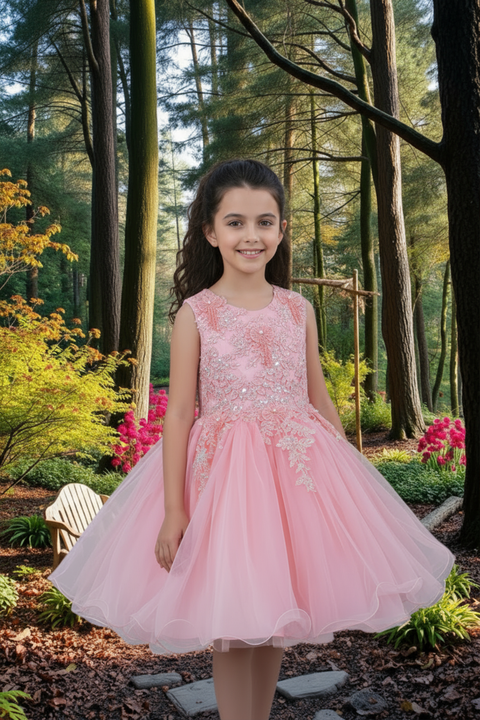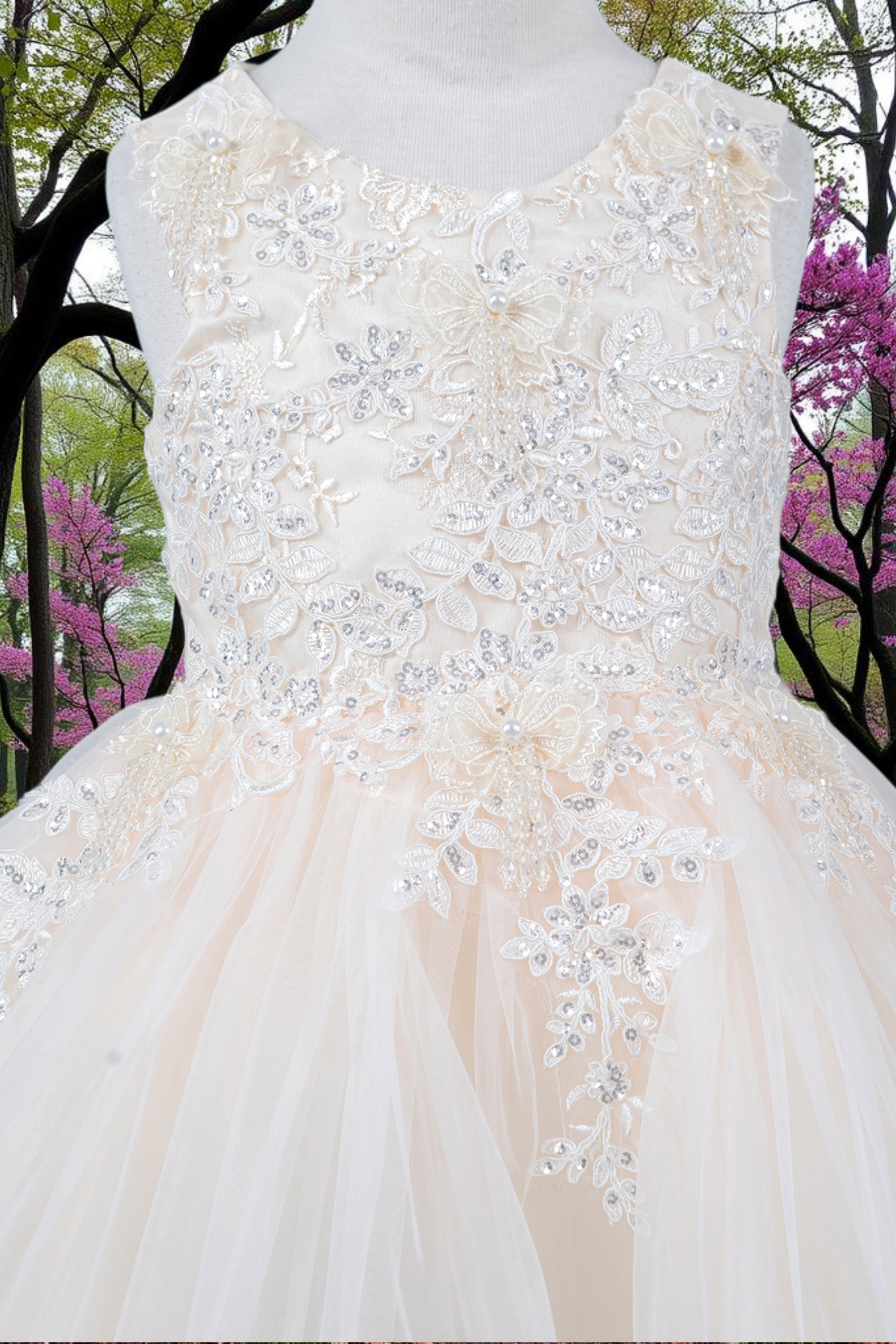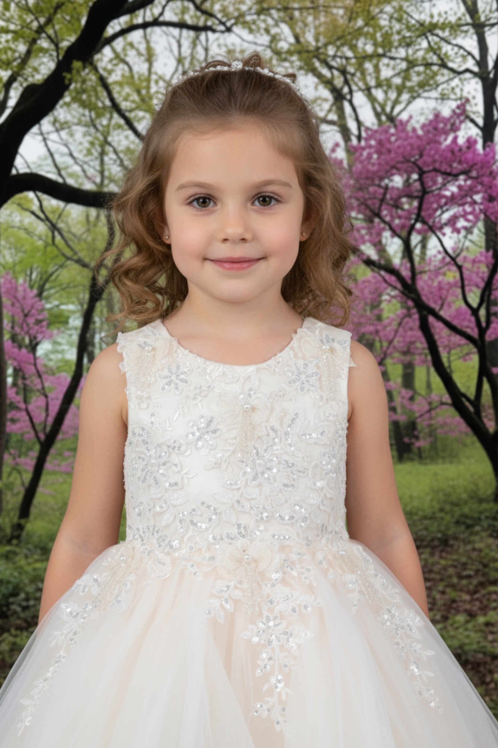 Girls Short Pageant & Party Dress – Blush, White, Champagne