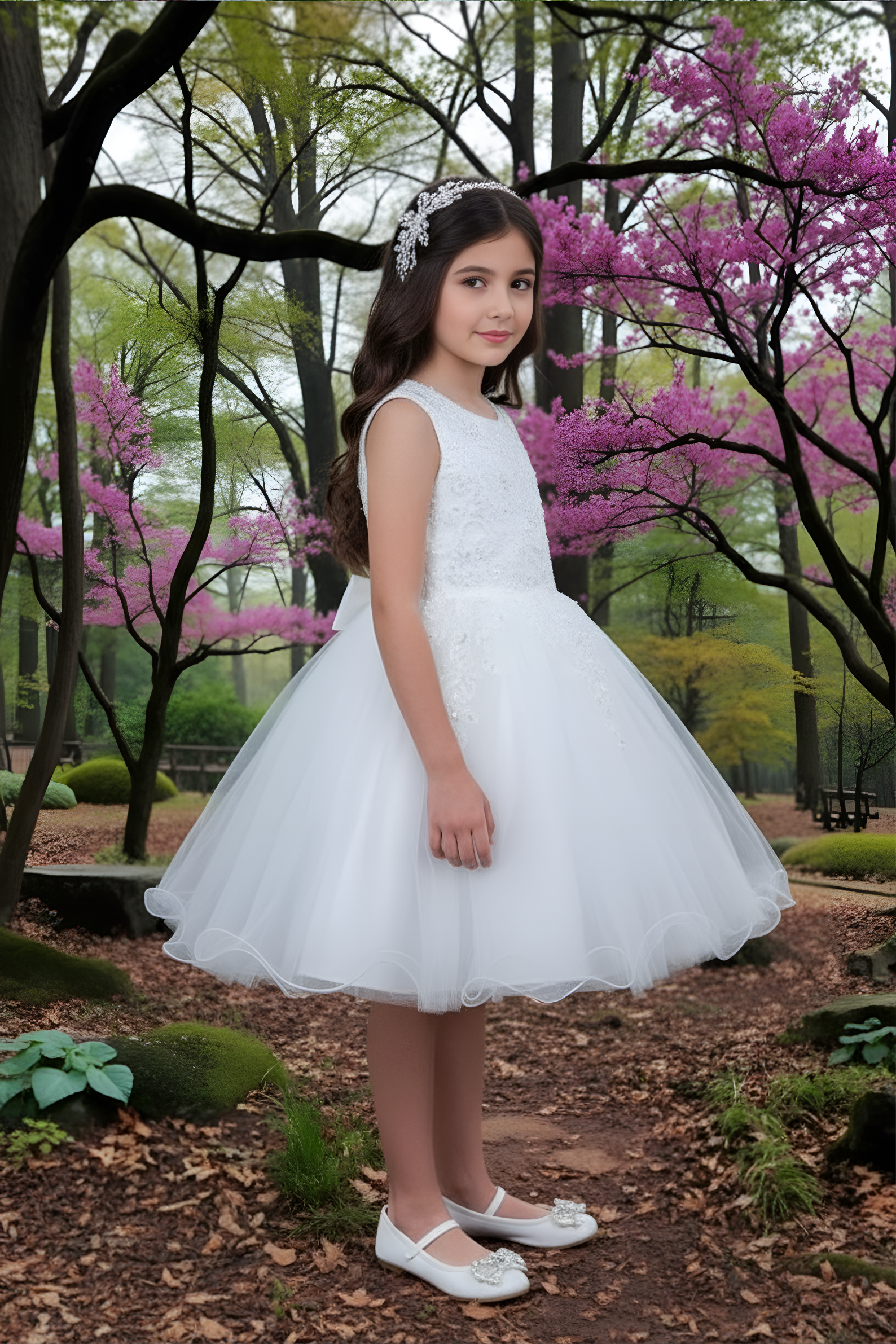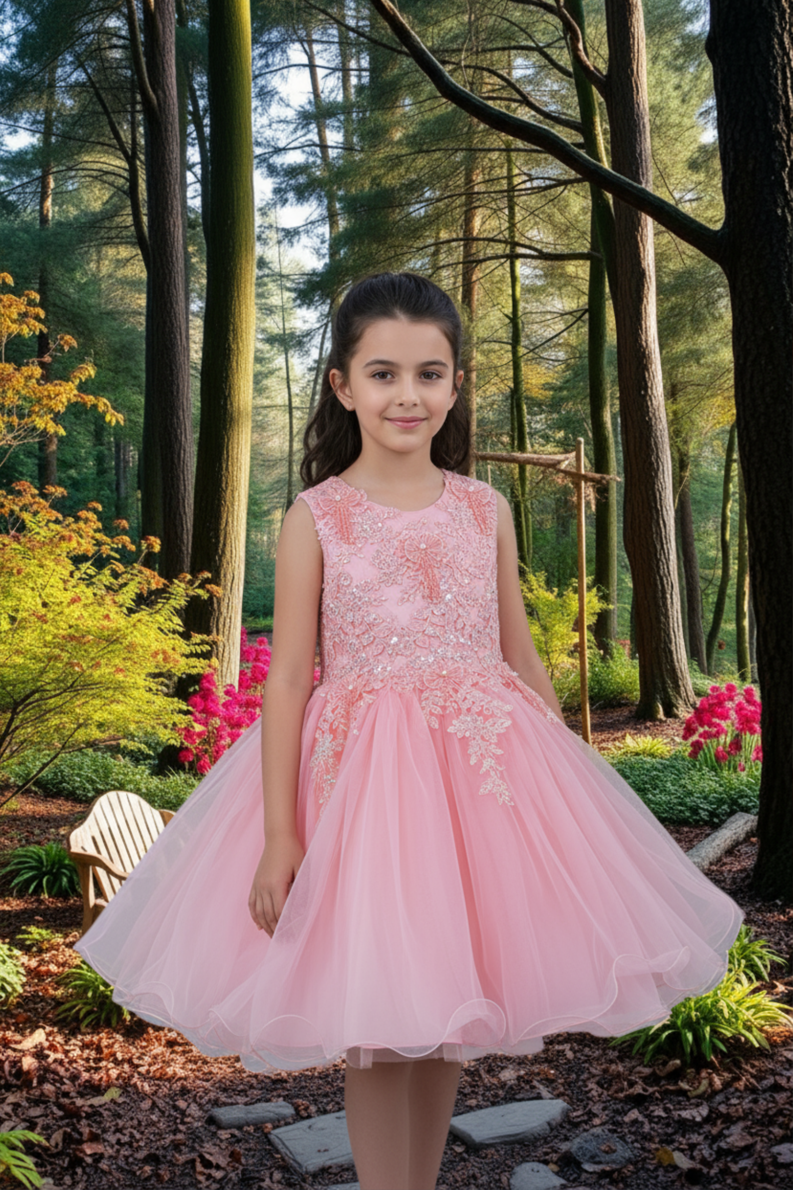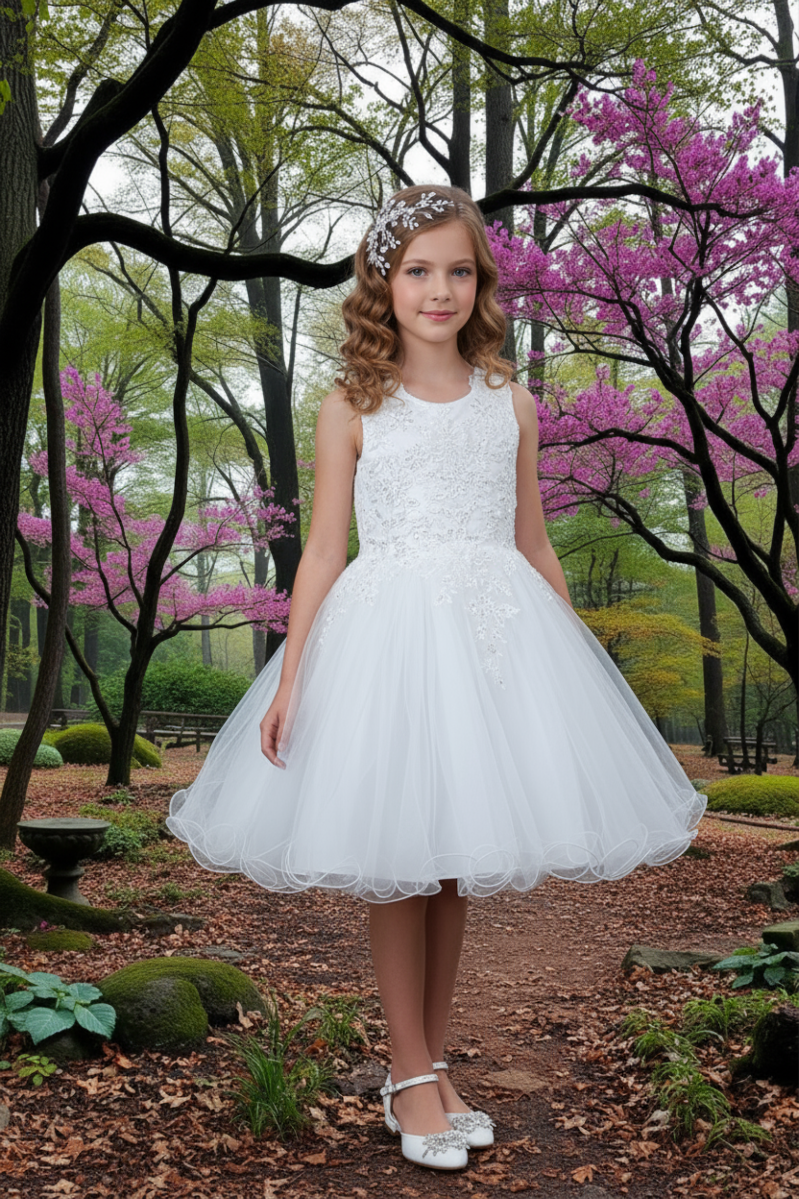 Girls Short Pageant & Party Dress – Blush, White, Champagne
