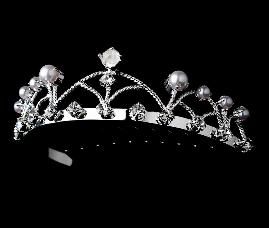 Shine bright like a diamond with The Claire Flower Girl & Communion Pearl Tiara. This elegant headpiece features sparkling rhinestones and lustrous faux pearls set in polished silver plating.