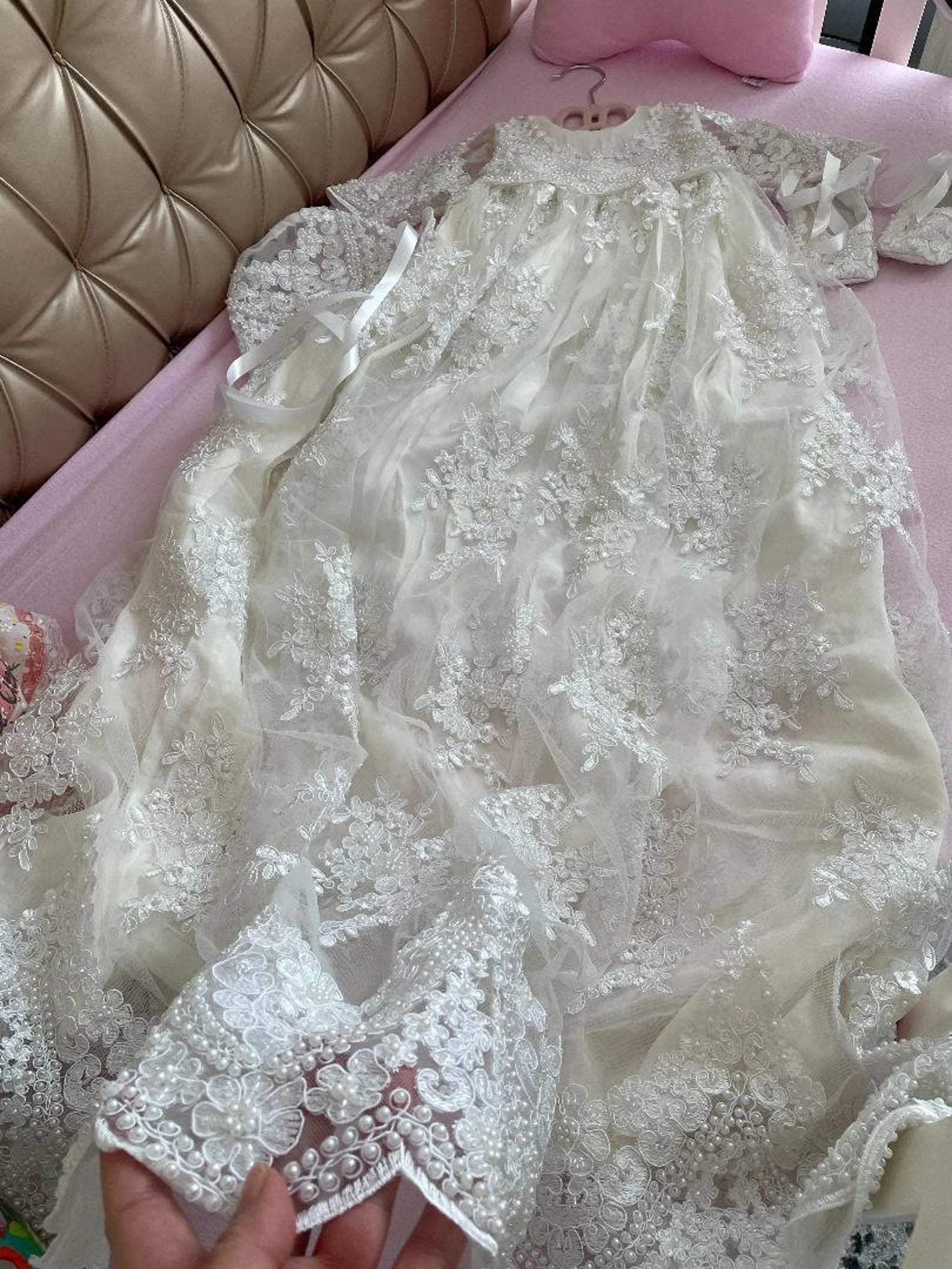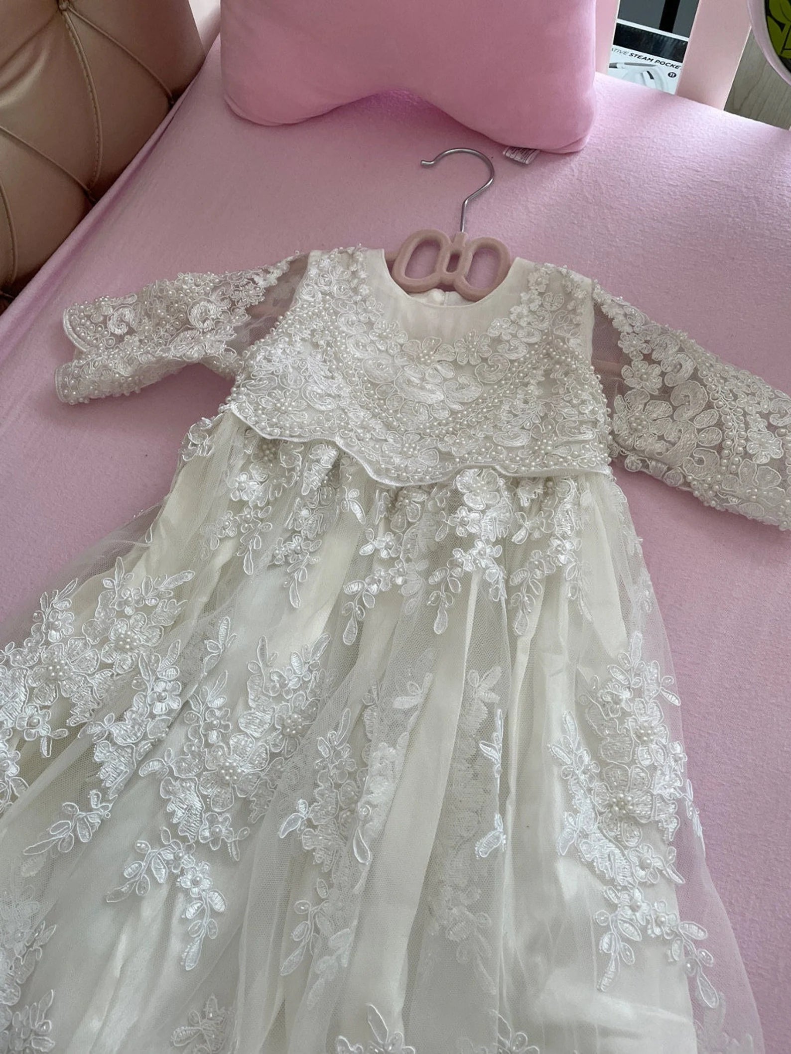 Gorgeous Couture Hand Crafted Beaded Lace Baptismal Gown