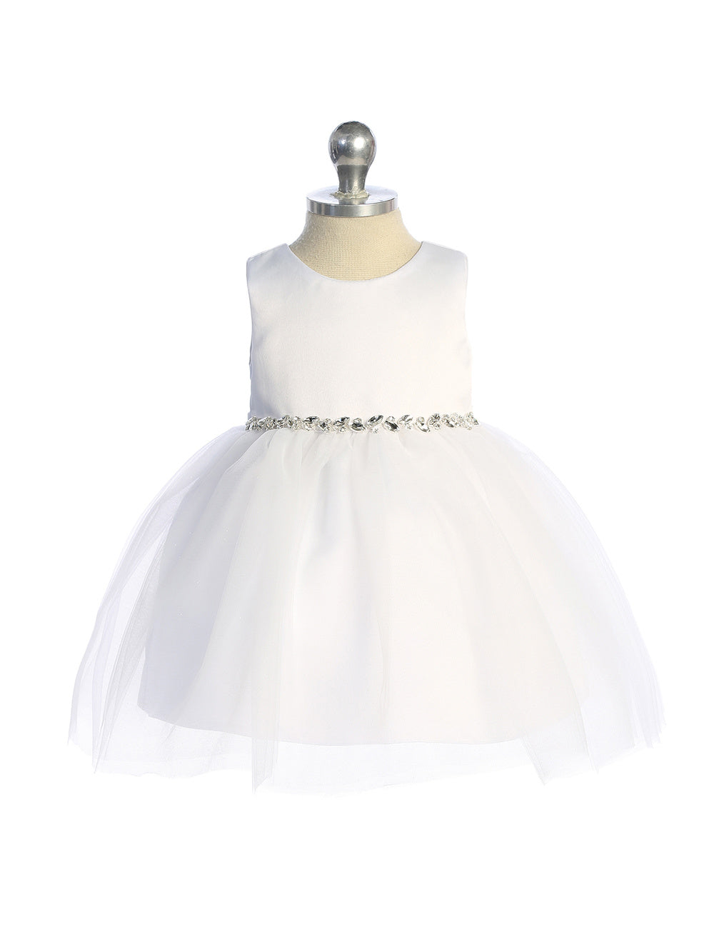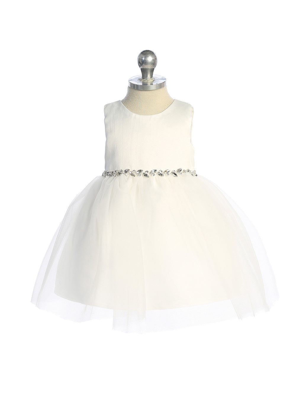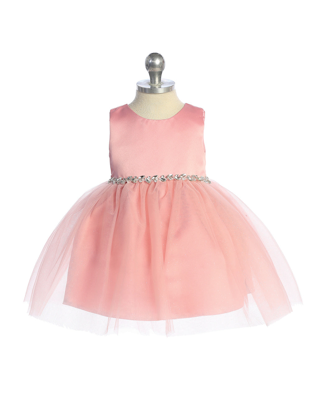 The Juliet Sparkle Baby Dress is designed to make your little one shine on her biggest days. This dazzling dress features a smooth satin bodice and a layered glitter tulle skirt that adds magical movement with every step. A rhinestone leaf belt sparkles at the waist, adding the perfect touch of elegance. Fully lined for comfort, it includes a secure back zipper and ties at the back for a custom fit. Ideal for baby pageants, first birthdays, holiday portraits, and special occasions. Available in 12 beautiful colors to match every moment.