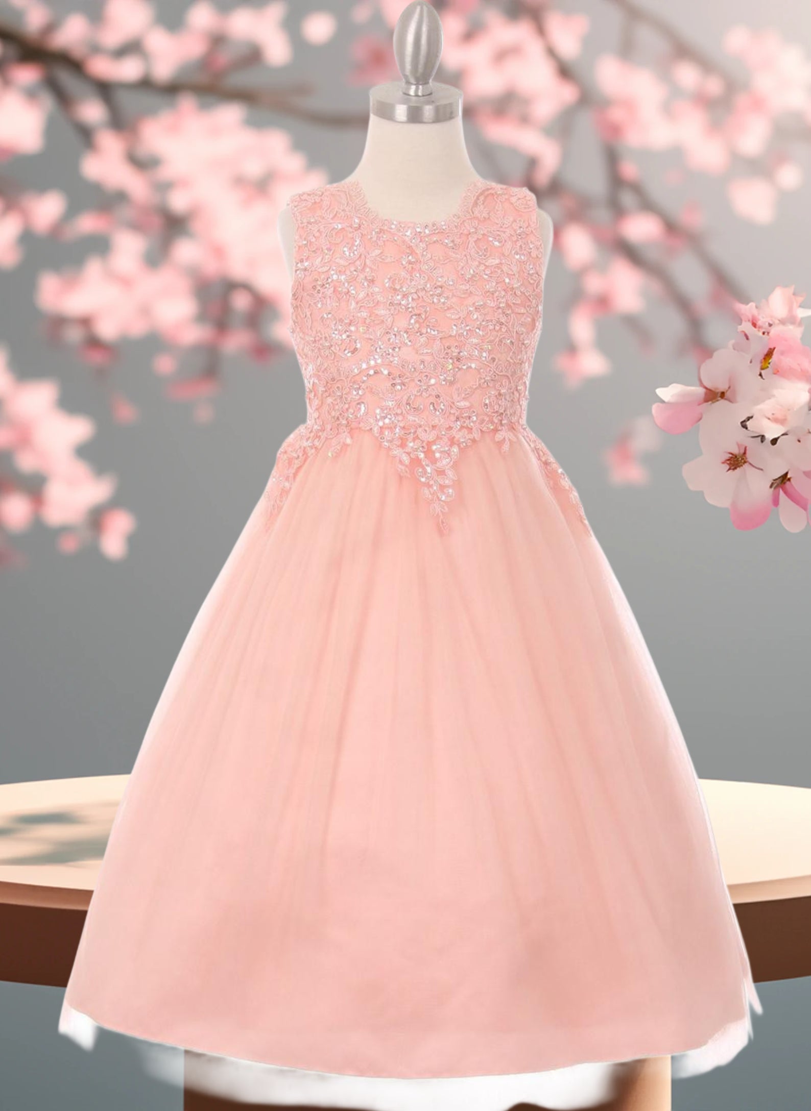 The Juliette Belle Dress exudes fairytale charm with its dainty puff sleeves and sparkling bodice embroidery. Layers of soft tulle create a voluminous tea-length skirt that floats gracefully with every step. A satin sash at the waist ties into a perfect bow at the back, making this dress a dreamy choice for communion, flower girl duties, or any cherished occasion.