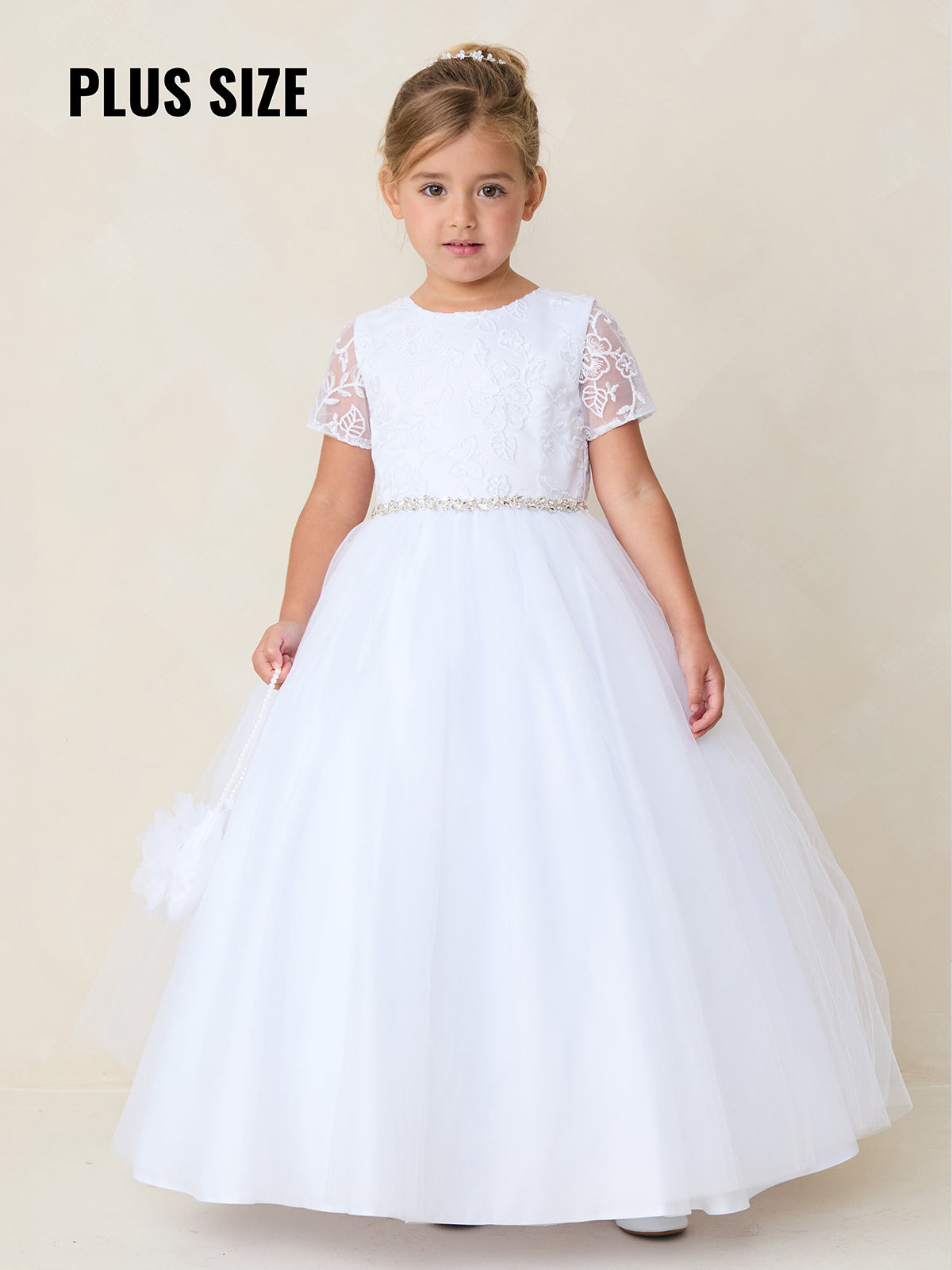 Kaylee Communion Dress - Elegant Lace & Tulle with Crystal Belt