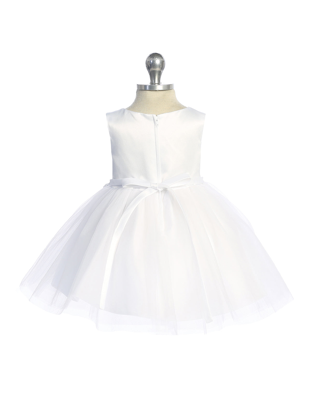 Dress your little princess in our exquisite Lia Baby Girls Satin Tulle Party Dress for your little Princess is offered at Blush Kids. This gorgeous party dress features a satin sleeveless bodice with delicate lace applique, a flattering natural waist, and a charming tulle skirt that will make her feel like a fairy princess. The concealed zipper back ensures a seamless fit, while the variety of colors available make it the perfect choice for holidays, birthdays, or portrait sessions. Make every occasion special with this beautiful dress for your little one.