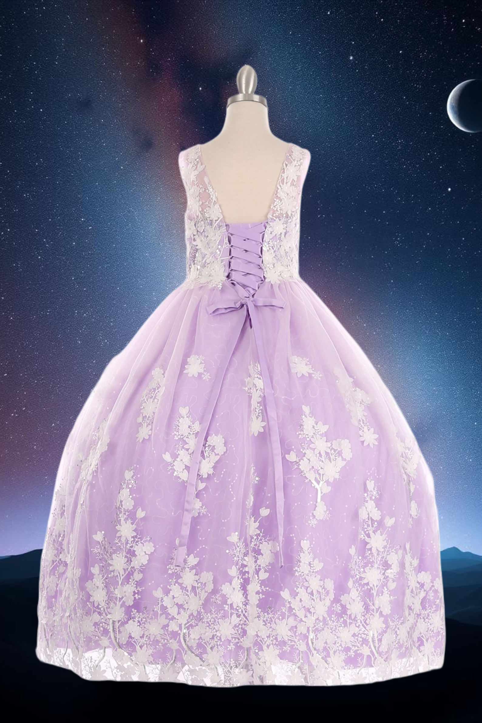 Lilac Floral Lace Ball Gown | Girls Pageant & Communion Dress