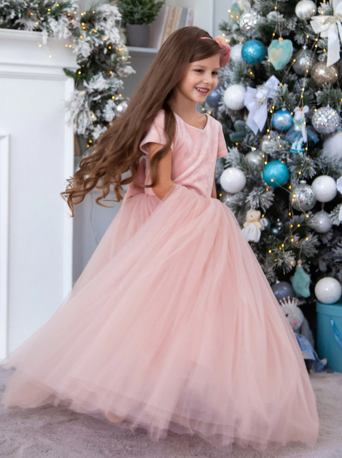 Elevate their special day with the Lilia Velvet Tulle Flower Girl Gown. This stunning dress features a velvet bodice with a round neckline and short sleeves, complemented by a full, layered tulle skirt that flows gracefully to the floor. Crafted with meticulous attention to detail, this floor-length gown is the perfect choice for any formal occasion. The Lilia Gown is a timeless piece that will make your little one feel like a true princess. The luxurious velvet and delicate tulle create an enchanting, heirloom-quality look that will have them feeling confident and comfortable on any special occasion.