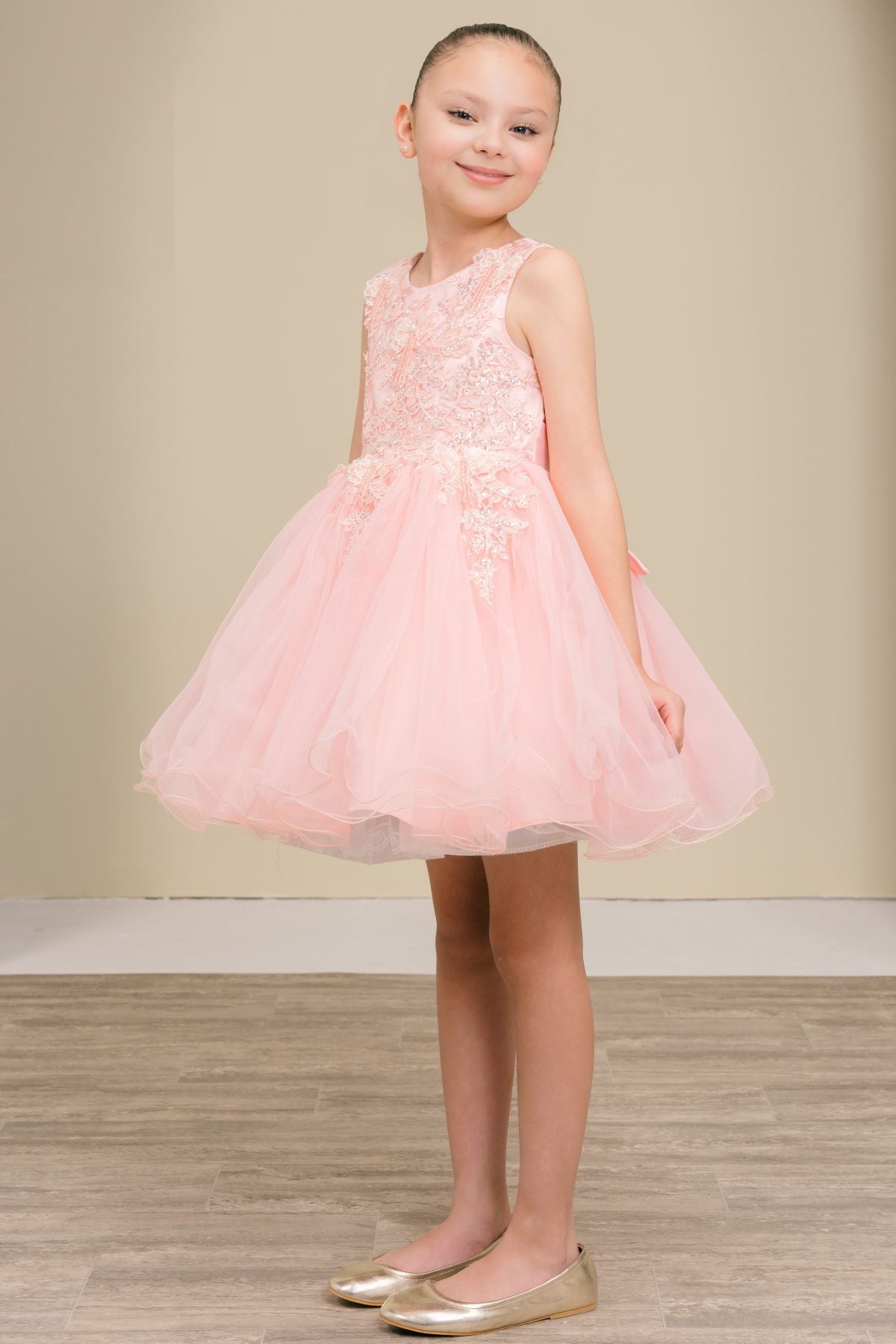 Lily Belle Girls Short Floral Applique Tulle Dress | Blush Kids