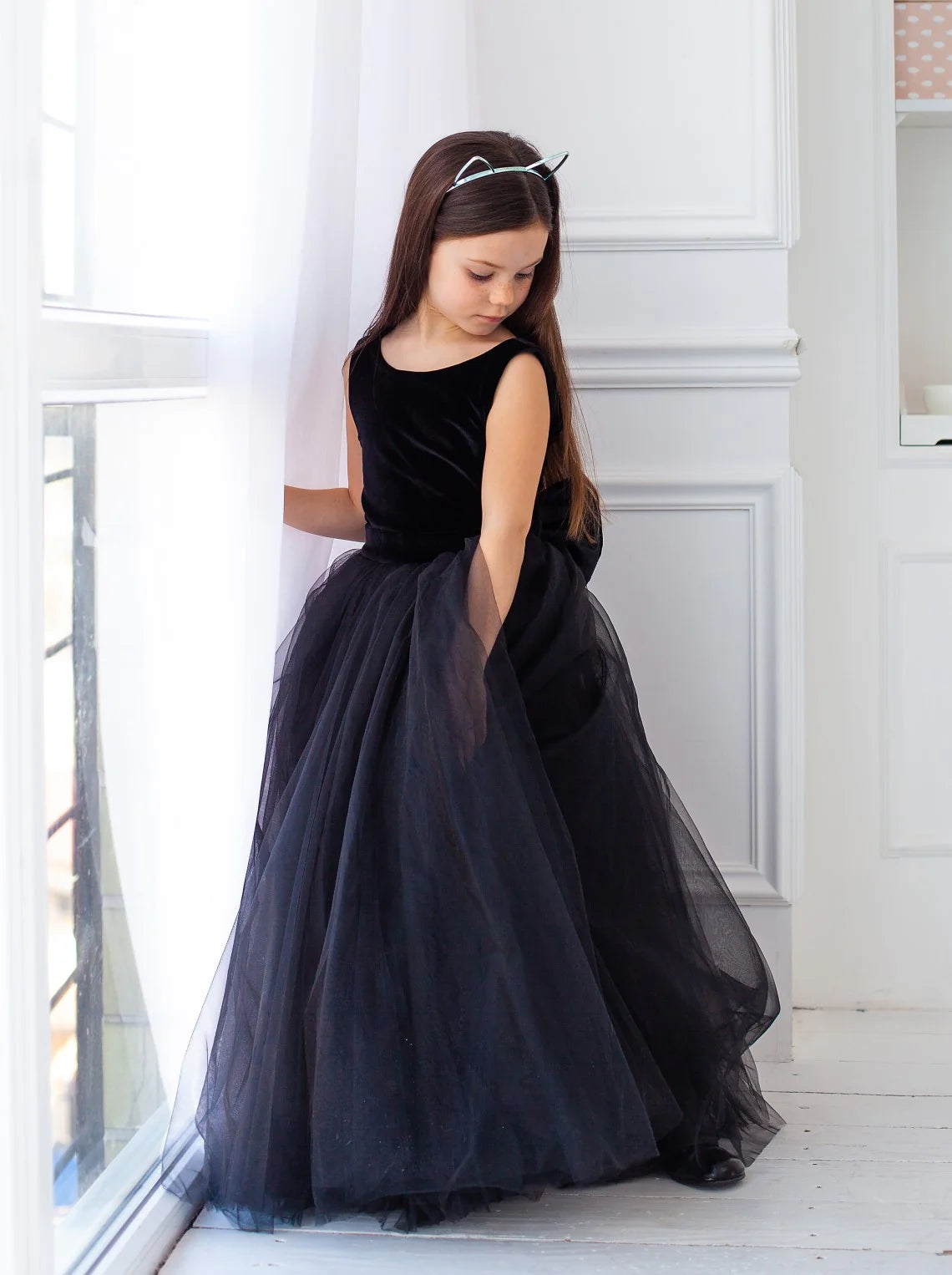 Captivate attention with elegance. The Malia Girls Velvet and Tulle Flower Girl Pageant Gown is a show stopping formal dress that will make her the belle of the ball. This exquisitely crafted gown combines the richness of velvet with the ethereal beauty of tulle for a look that's both glamorous and graceful. The natural waist and floor-length skirt create a flattering, feminine silhouette that will have her feeling like a princess. Whether it's for a wedding, pageant, or special occasion, this elegant dress will make her the center of attention. Elevate any event with the sophisticated style and timeless elegance of the Malia Girls Velvet and Tulle Flower Girl Pageant Gown.