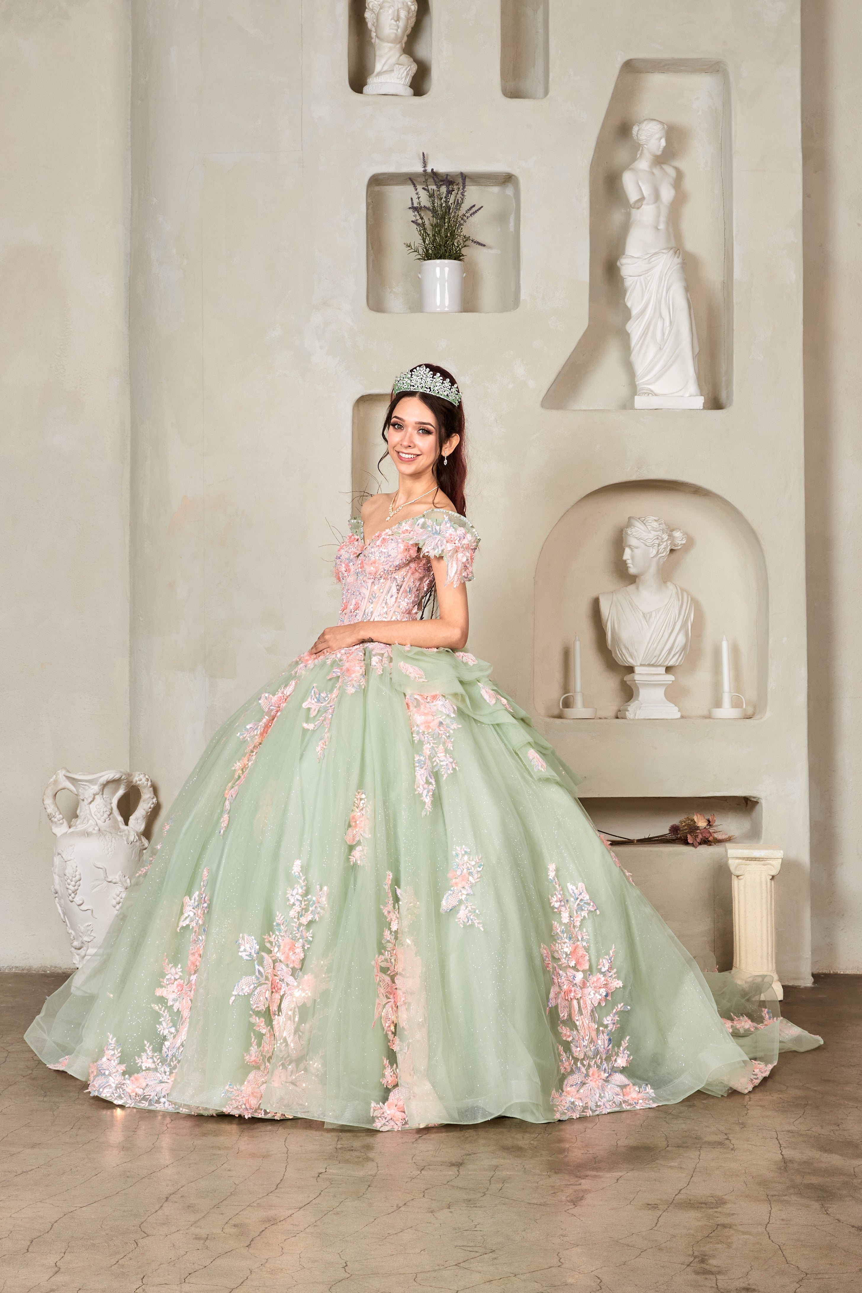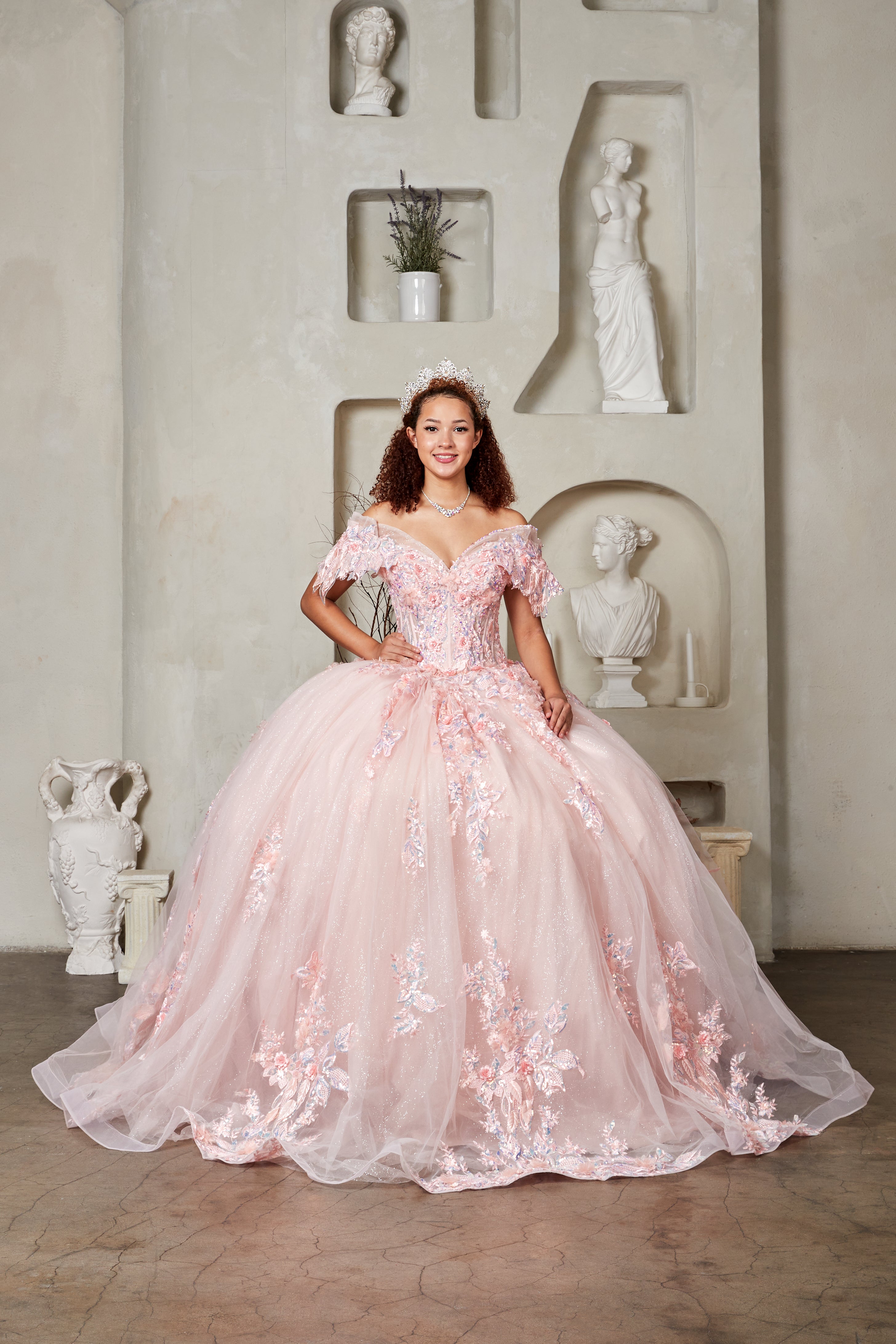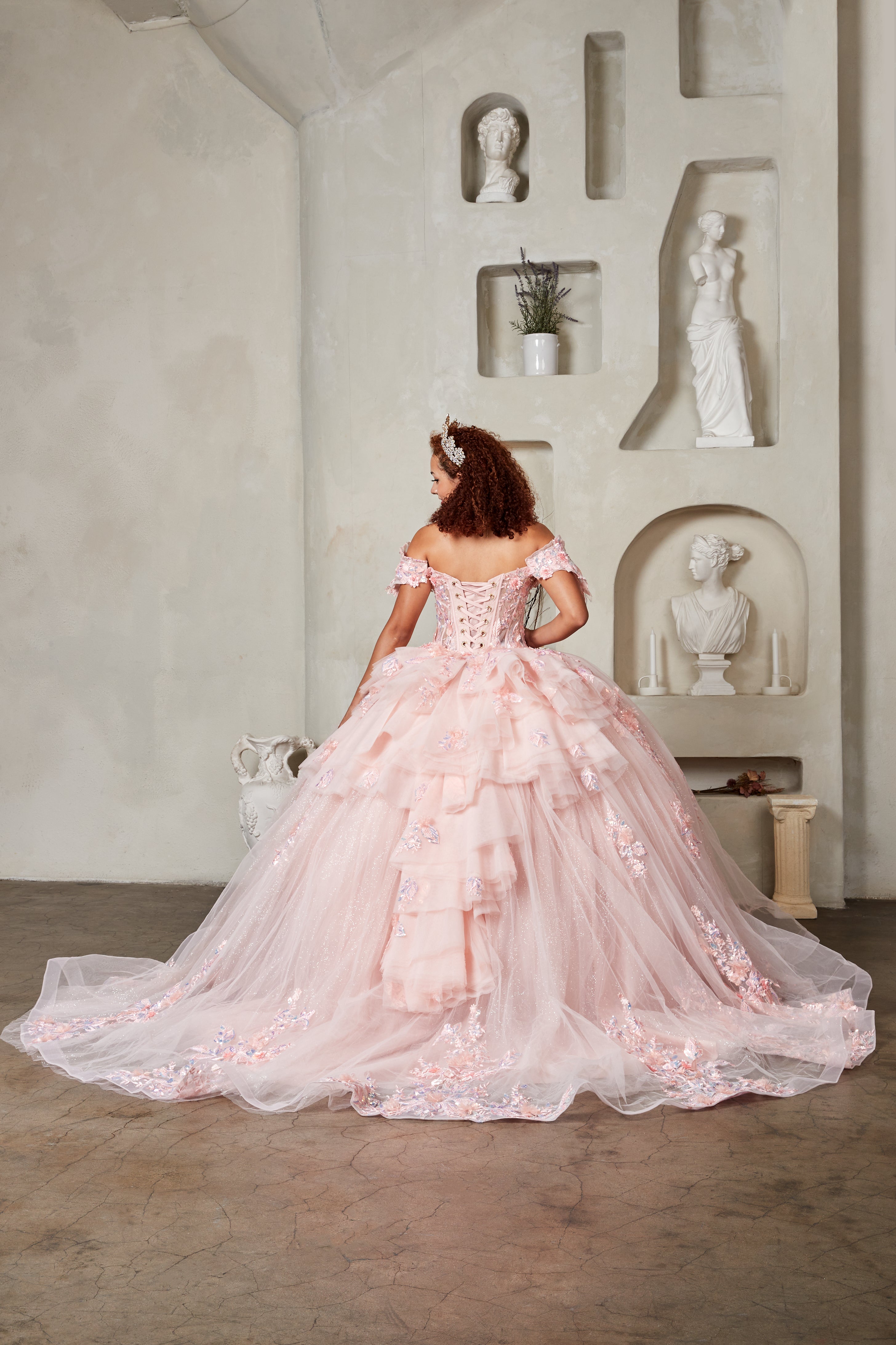 The Maribella Enchanted Gown is a breathtaking celebration of whimsy and elegance, adorned with delicate 3D butterfly appliqués and sparkling floral embroidery. Designed in a magical ball gown silhouette, this off-shoulder masterpiece features a sheer structured bodice and dreamy tulle layers that float effortlessly. Shown in lilac and blush pink, this gown is available in multiple captivating shades to match your vision. Perfect for quinceañeras, sweet sixteens, and show-stopping grand entrances, this gown transforms every moment into a fairytale come true.