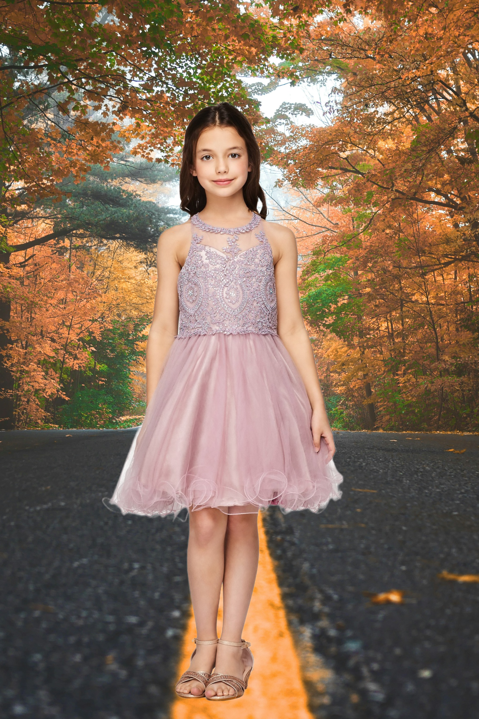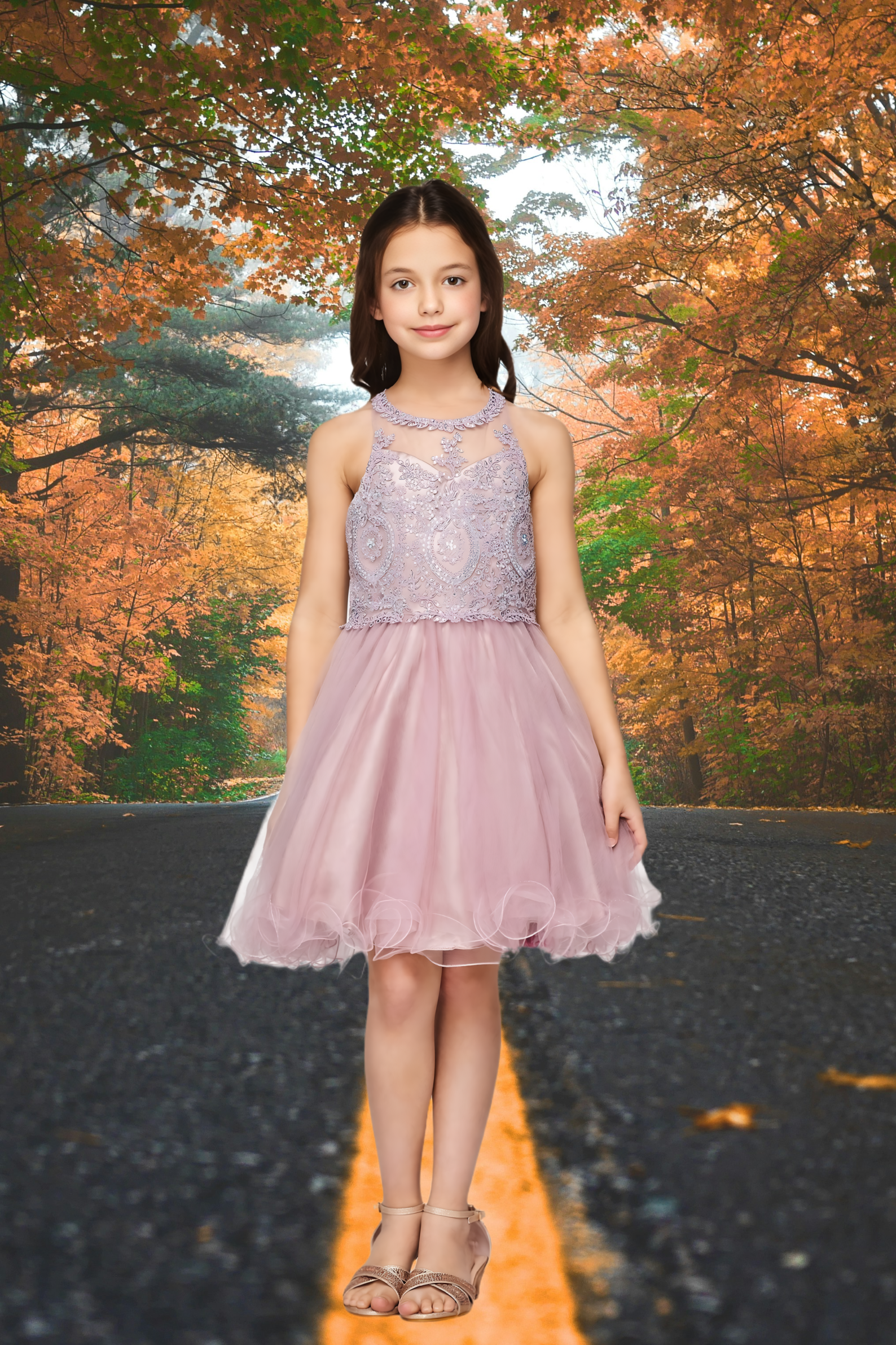 Mauve Beaded Tulle Party Dress | Girls Pageant & Birthday Dress