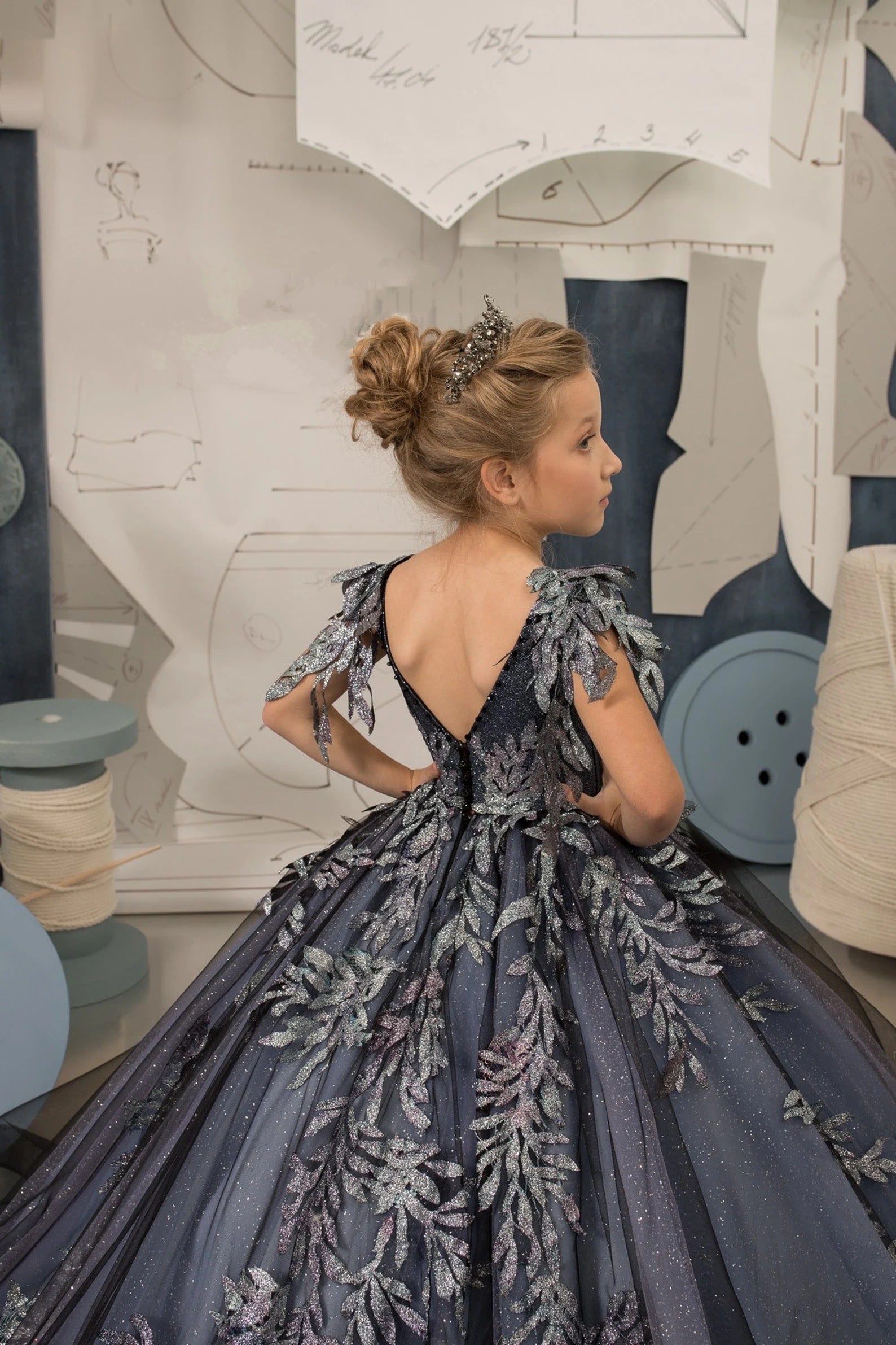 The Melina Couture Dress is a stunning masterpiece designed to make your little one shine. This enchanting black and lilac gown features shimmering embellishments, intricate leafy appliqués, and a dramatic layered tulle skirt, exuding luxury and grace. Perfect for red carpet events, galas, pageants, and special occasions, the Melina Dress guarantees elegance and sophistication for every memorable moment. Fully customizable for a perfect fit, this gown is a timeless addition to our couture collection.