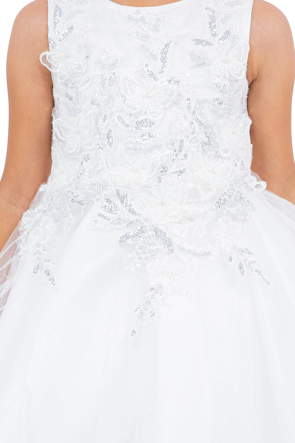 The Nadia Short Pageant Dress is a dazzling choice for young girls who want to shine. Featuring a glittery tulle skirt and intricately detailed floral appliqués, this dress offers a perfect combination of sparkle and elegance. Designed with a comfortable fit and a sleeveless bodice, it’s ideal for pageants, birthdays, and special occasions. Available in lovely pink and classic white, the dress ensures your little one will steal the spotlight.