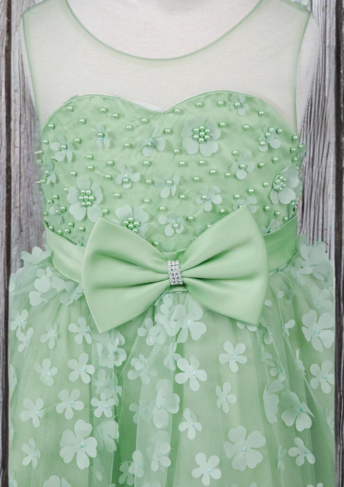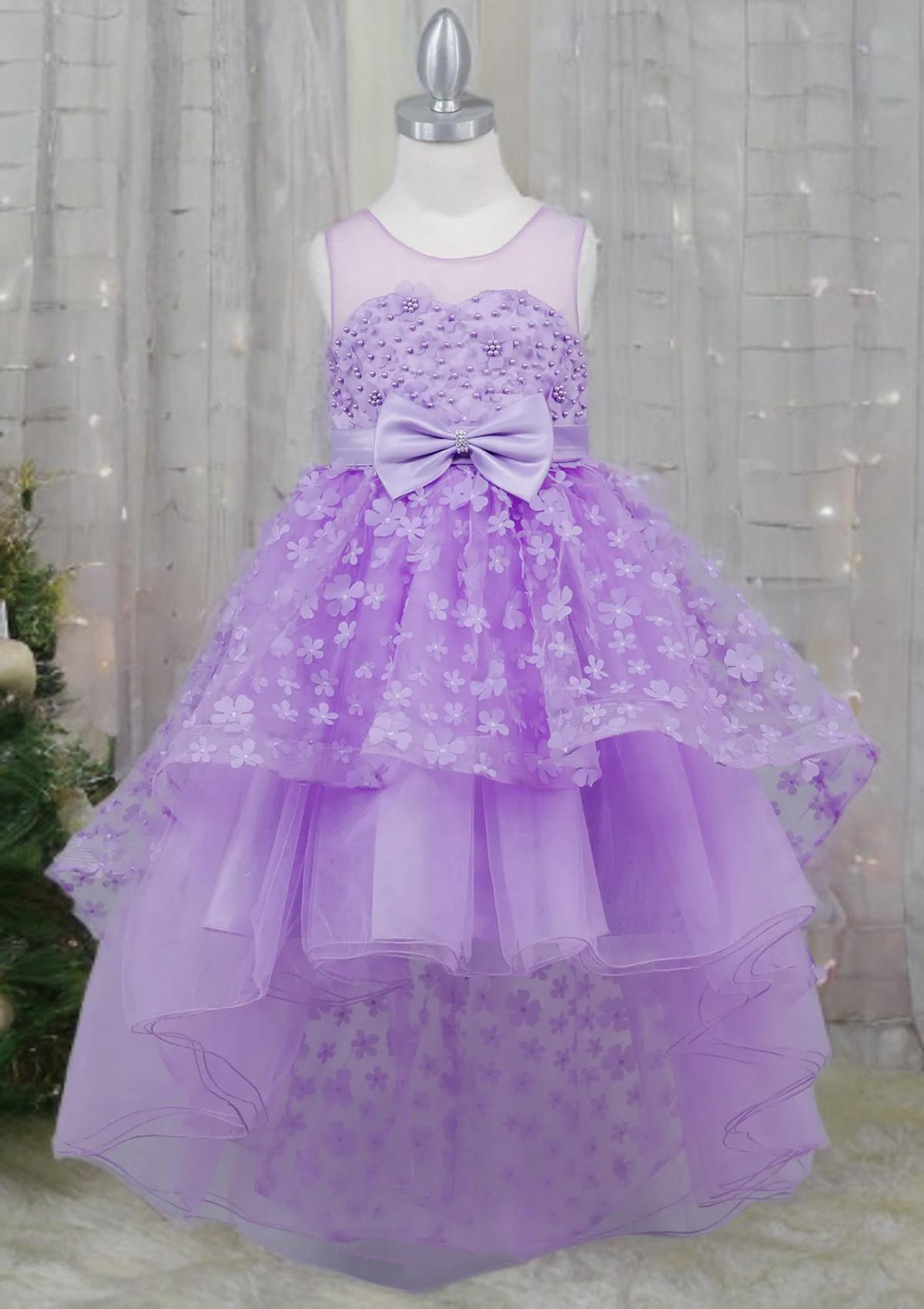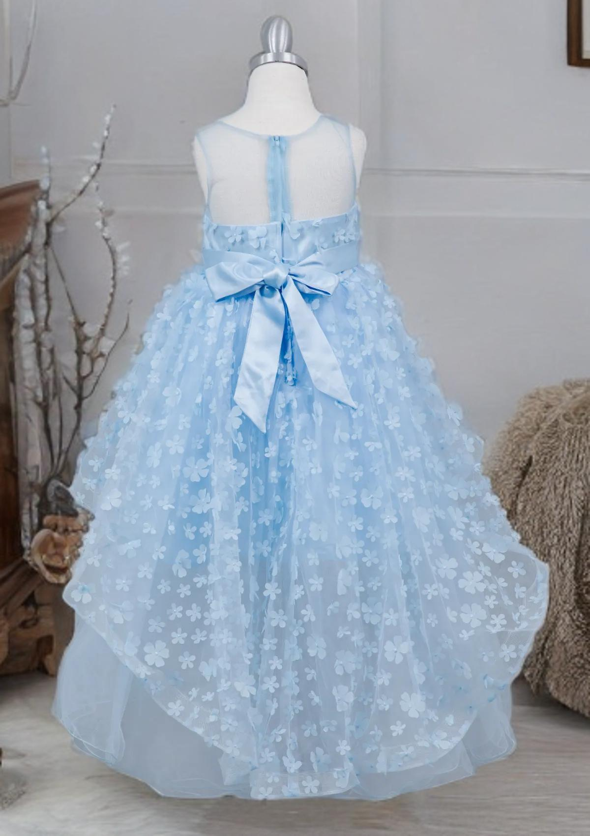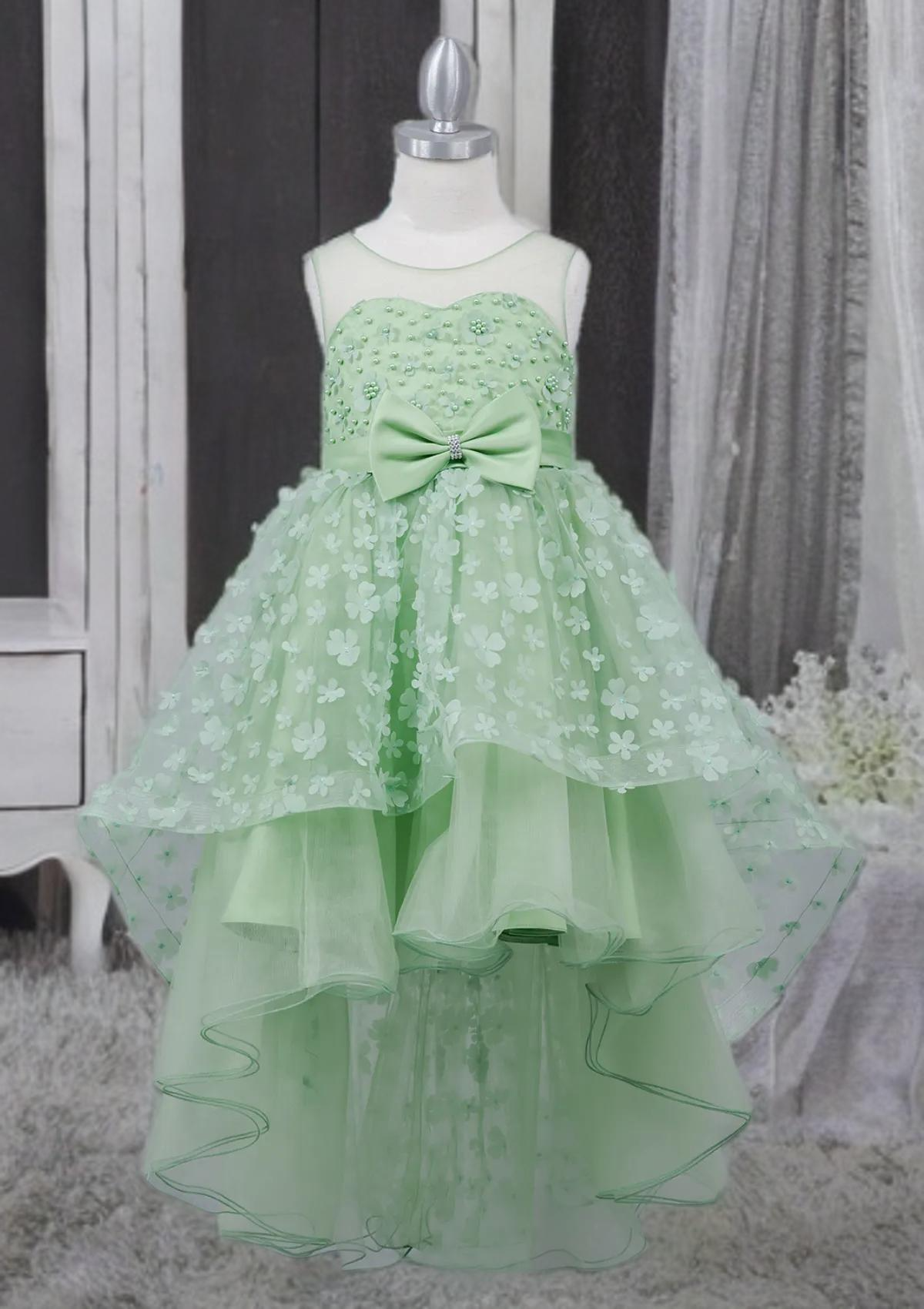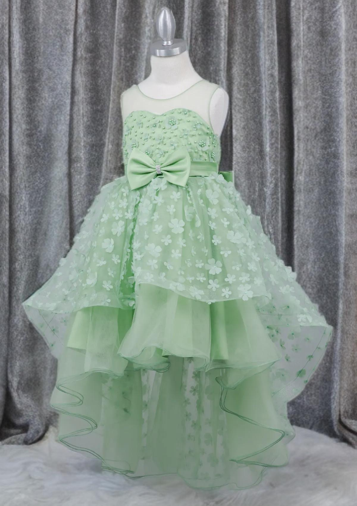 Bring whimsical charm and elegance to her next special occasion with our Dahlia Bloom Dress from the Blush Collection. This stunning dusty pink hi-low party dress features dimensional floral appliqués, a sheer illusion neckline, and a statement satin bow at the waist for that picture-perfect princess look. The layered tulle skirt adds volume and grace, making it ideal for birthdays, pageants, flower girl duties, and father-daughter dances. Designed for comfort and style, this dress ensures she shines bright at every celebration. This dress comes in several gorgeous colors.