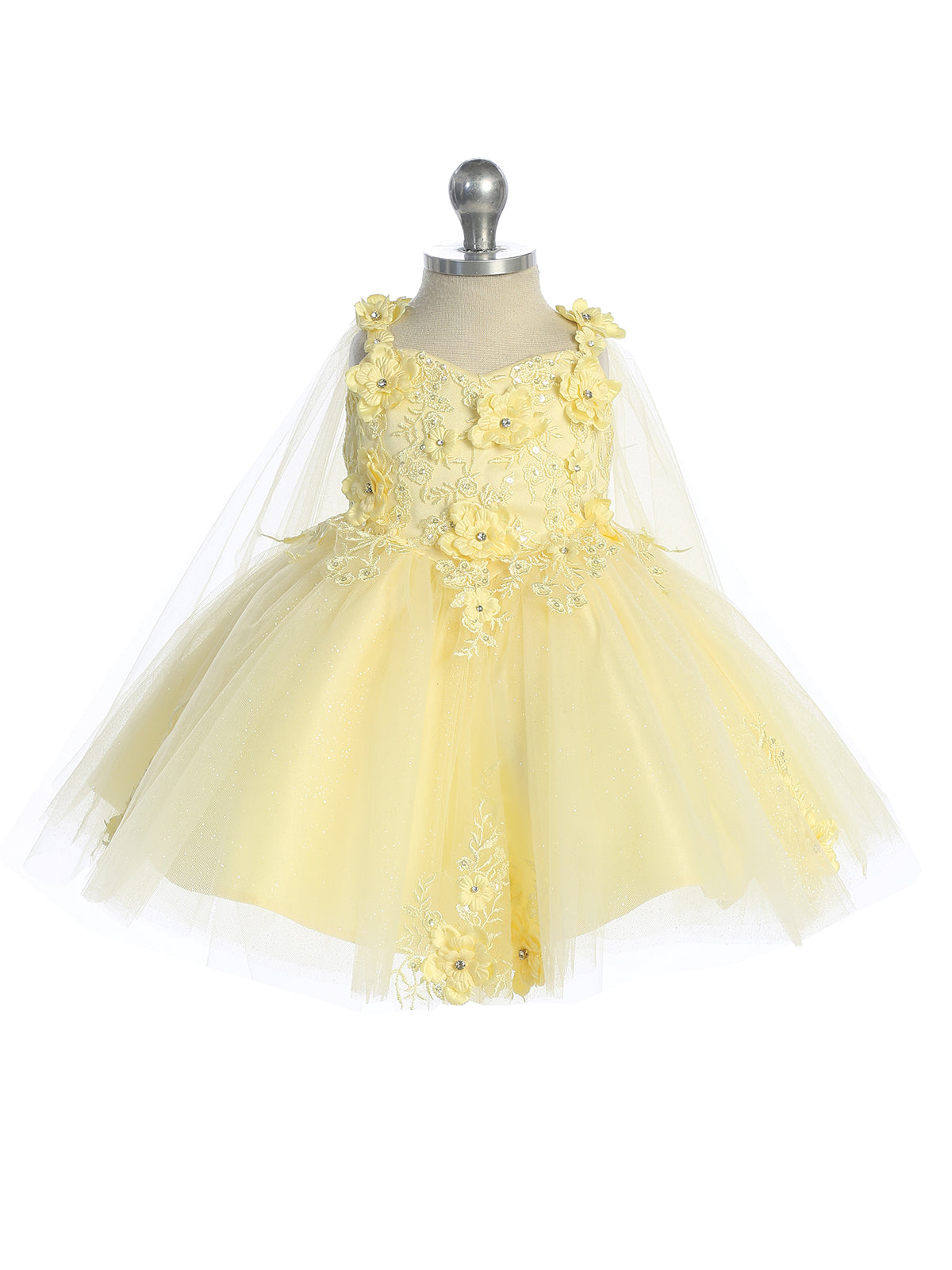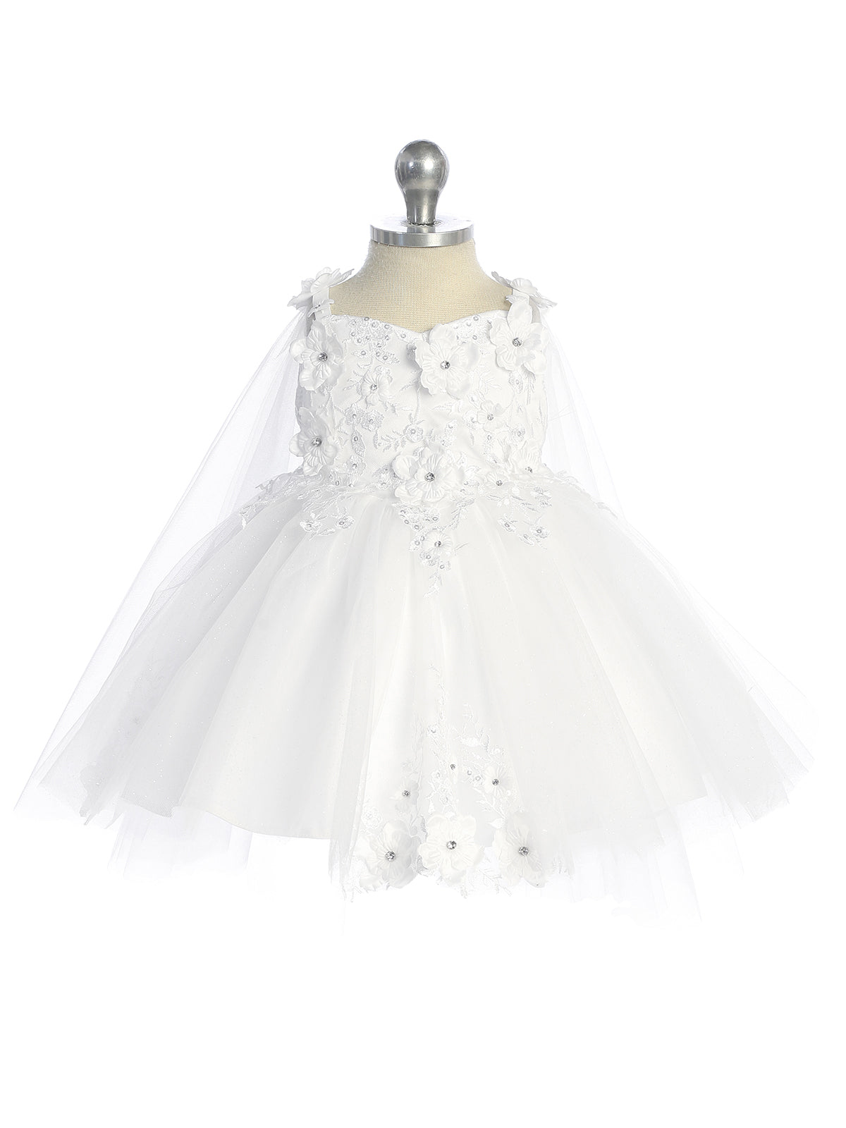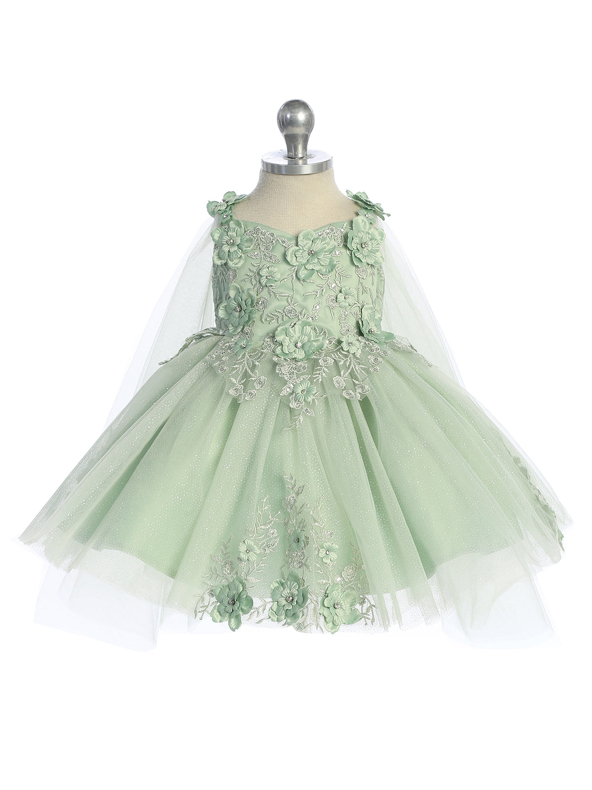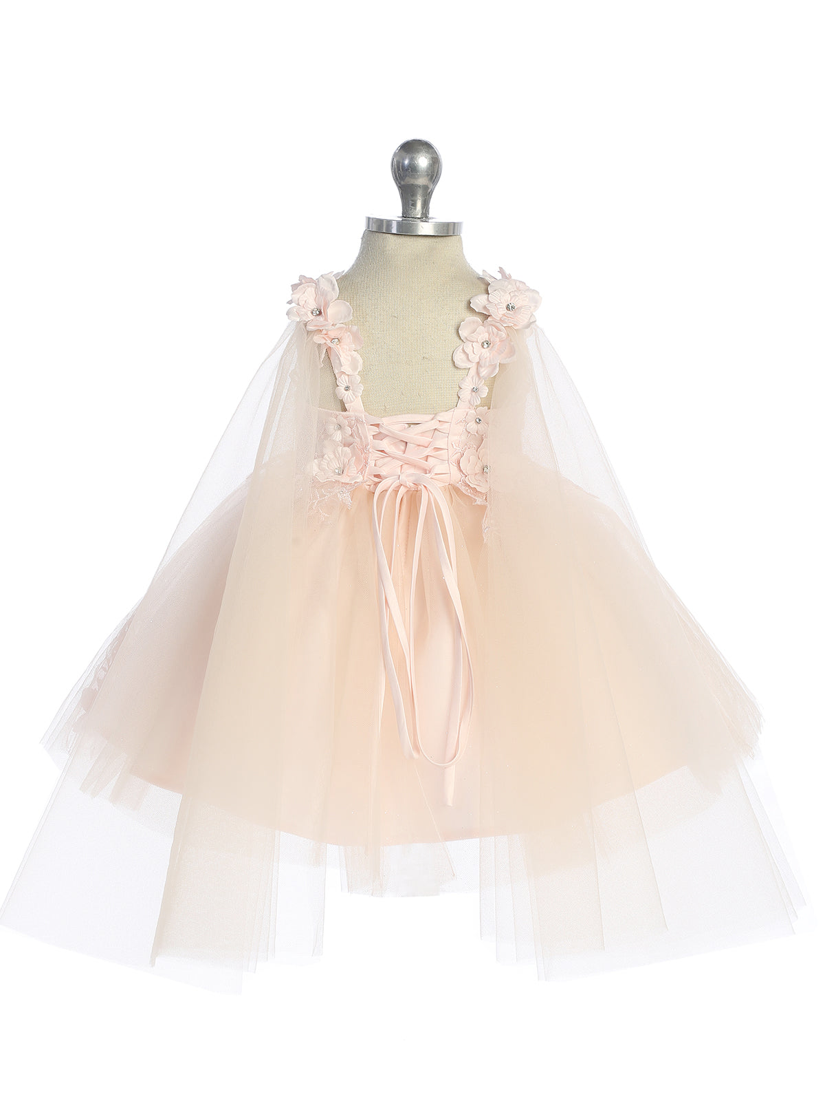 Elevate your little princess's party wardrobe with our Rosalee Baby Girls 3D Floral Party Pageant Dress in beautiful blush pink. This stunning dress features a 3D floral bodice that adds a touch of whimsical charm, while the glitter tulle skirt shimmers with every twirl. The detachable cape adds a touch of elegance, perfect for any special occasion. The corset tie in the back ensures a perfect fit, while the concealed zipper in the back makes dressing a breeze. Make your little one feel like royalty in this enchanting dress.