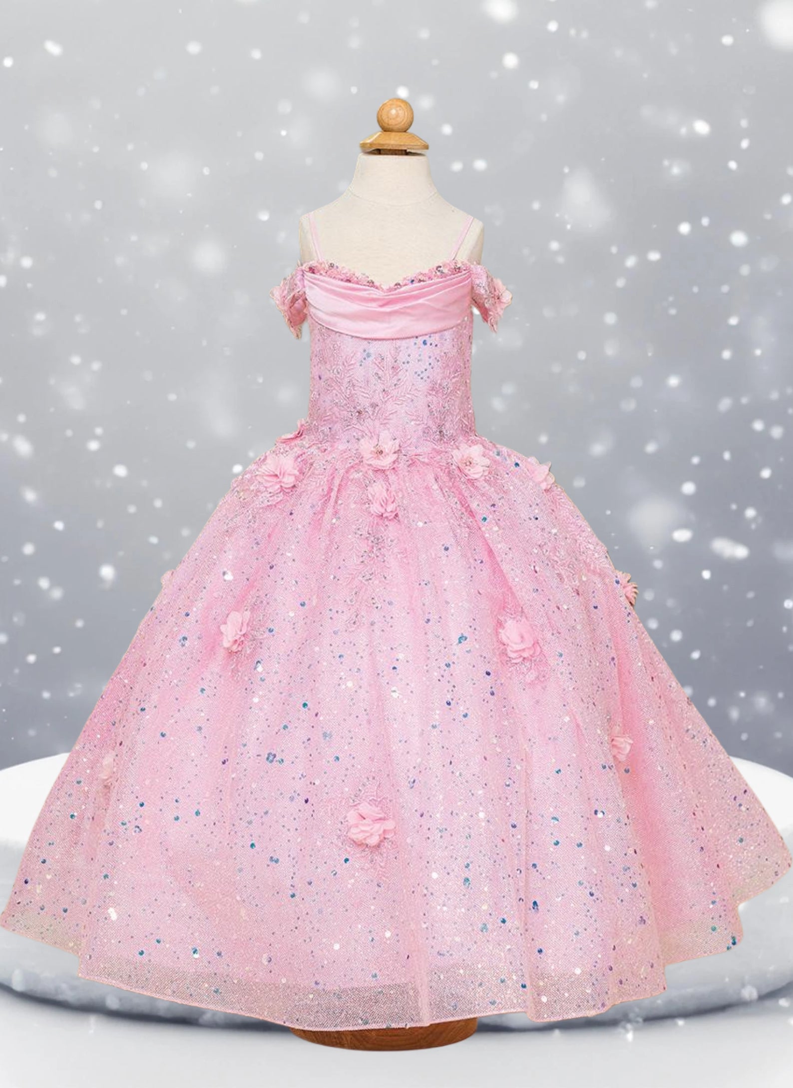 Rosalina Petal Sparkle Gown – Pink Dress for Pageants & Parties