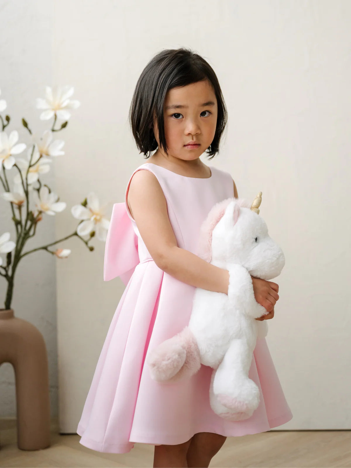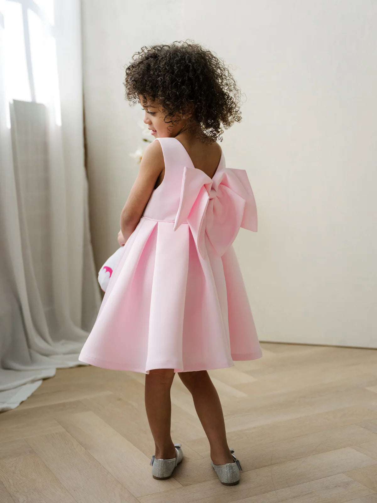 The Rosamie dress by Teter Warm is a beautifully tailored bright pink party dress designed to capture timeless charm with a playful, elegant finish. Featuring a sleeveless bodice, softly pleated skirt, and a statement oversized bow at the back, this dress offers a refined boutique silhouette with graceful movement. Perfect for birthdays, flower girl moments, weddings, portraits, pageant interviews, and special occasions, Rosamie delivers classic elegance in a soft blush pink tone that photographs effortlessly. The dramatic bow-back detail adds a couture-inspired touch that feels polished yet sweet, making this dress a standout choice for memorable celebrations.
