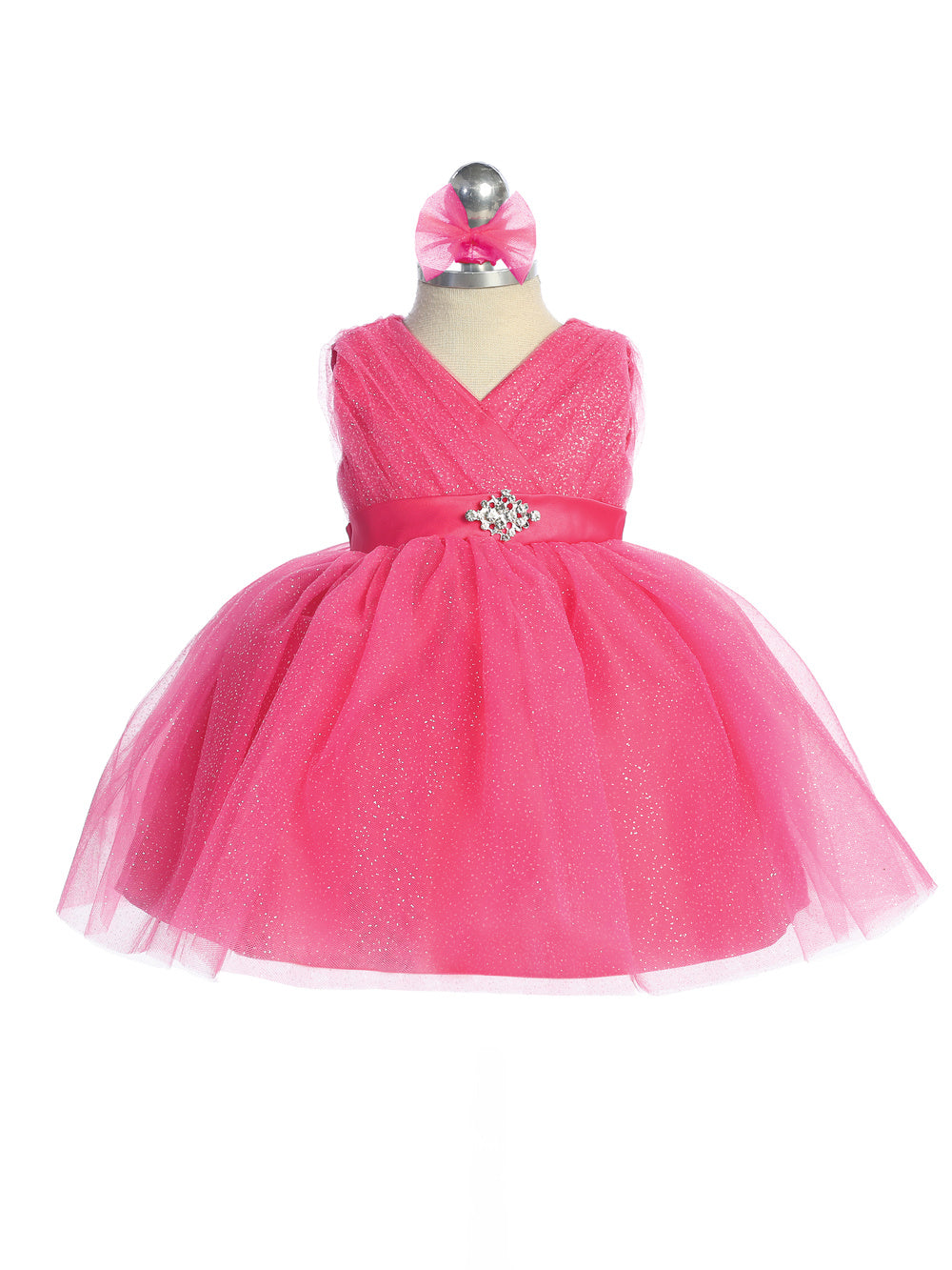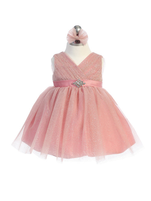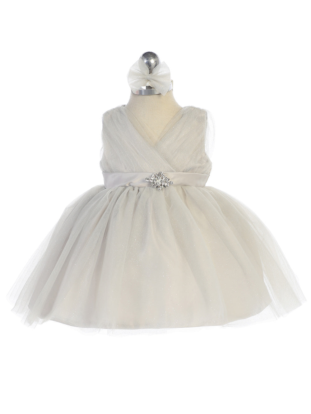 Let her shine in our Sapphire Belle Dress, a stunning glitter tulle dress designed to make every little girl feel like royalty. The sleeveless V-neck bodice sparkles with delicate shimmer, while the voluminous layered skirt adds a dreamy, twirl-worthy silhouette. A satin waistband adorned with a jeweled brooch completes the look, adding a touch of glamour to any celebration. Ideal for flower girl moments, birthday parties, holiday events, or special occasions, this dress also includes a coordinating bow for a picture-perfect finish.