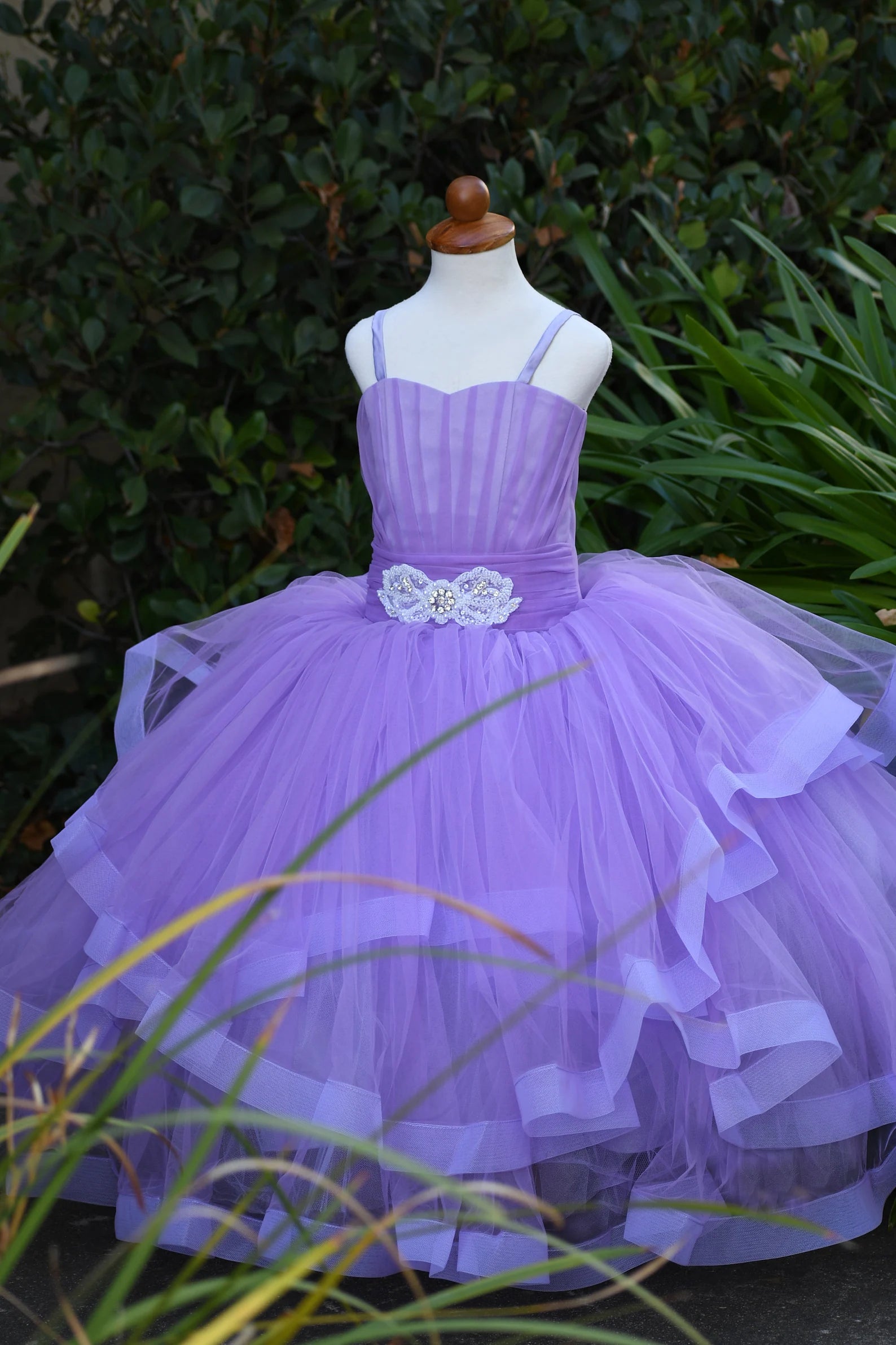 Serena Couture Pageant Dress For Girls, is a masterpiece meticulously designed to make every moment a pageant of beauty and grace. With complimentary shipping, this enchanting dress is an embodiment of elegance and sophistication. The satin pleated bodice delicately wraps around in a loving caress, accentuated by the slender spaghetti straps that dance on the shoulders with every turn. The back reveals an exquisite zipper corset, marrying functionality with fashion in an embrace of sublime craftsmanship. At the waist, a dazzling crystal brooch casts a spell of enchantment, leading the eyes to the pièce de résistance - a full tiered tulle skirt that cascades to the floor in a spectacle of opulence and grandeur.