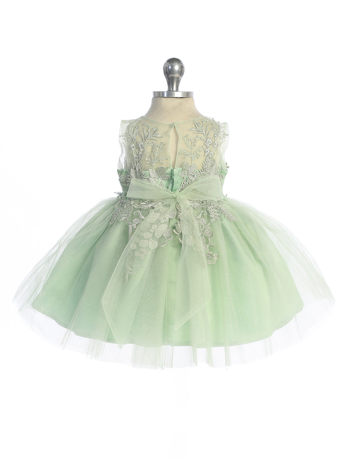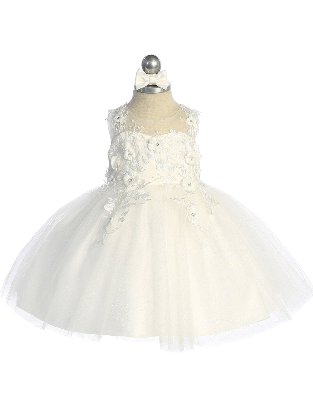 Dress your little princess in the epitome of elegance with the Shyla Baby Girl Special Occasion Party Dress. This stunning ensemble features a beautiful illusion neckline bodice adorned with 3D flowers and delicate beads, giving it a truly ethereal look. The gorgeous glitter tulle skirt adds a touch of sparkle and whimsy, perfect for any special occasion. With a rear center zipper and a sash tie back, this dress ensures a comfortable and secure fit for your little one.
