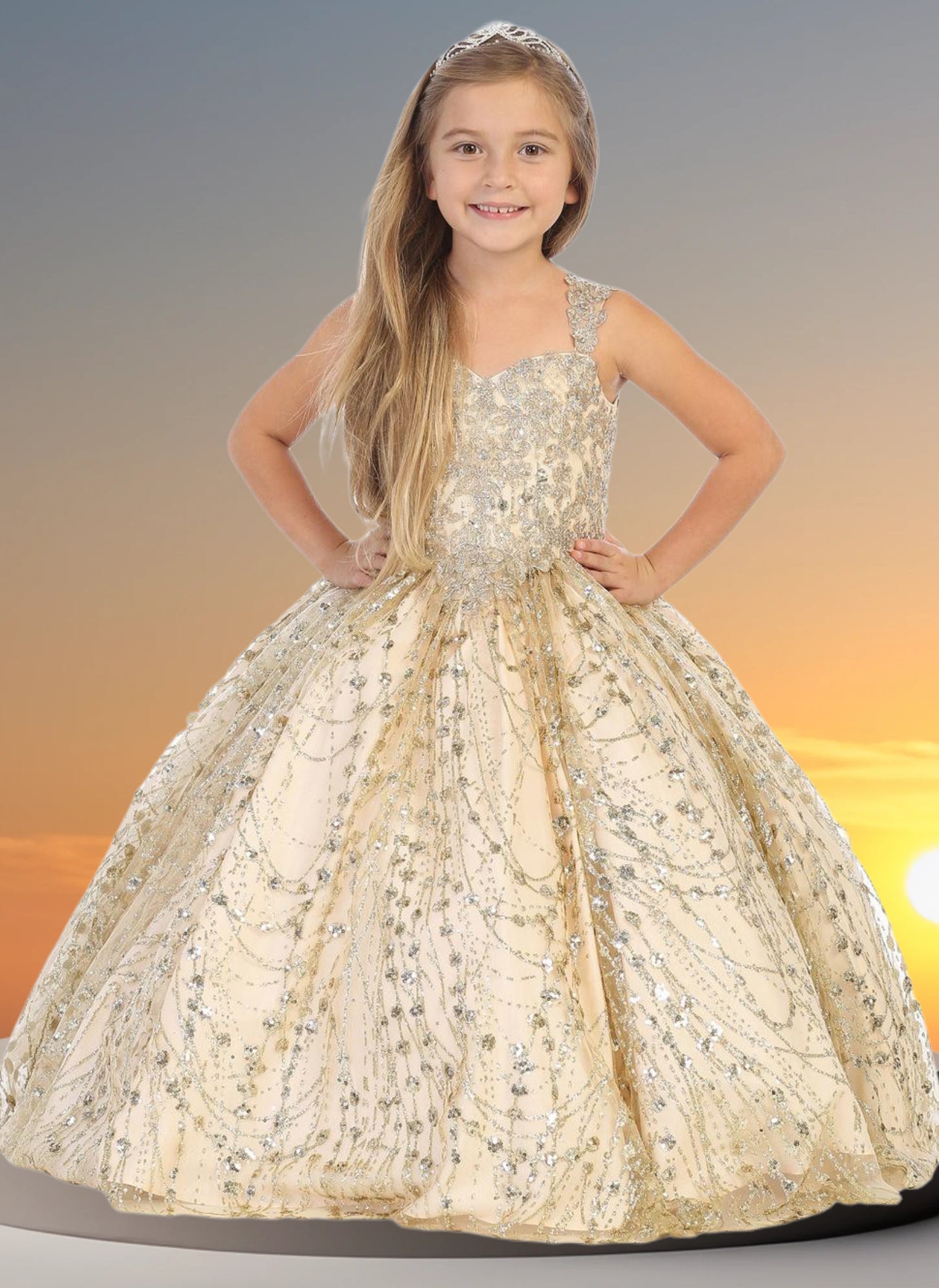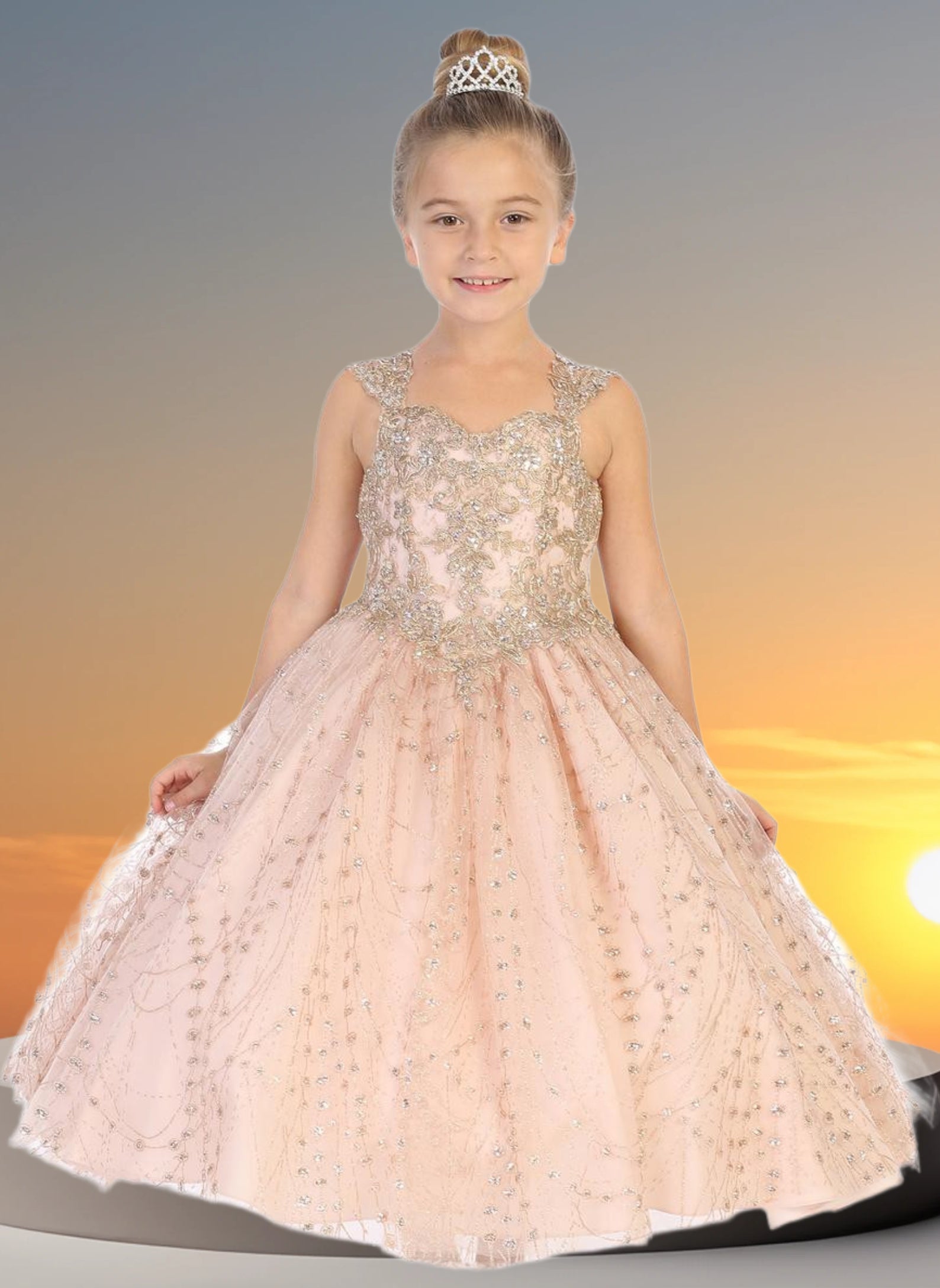 Stunning Misha Sequin Lace Embroidered Pageant Gown for Girls