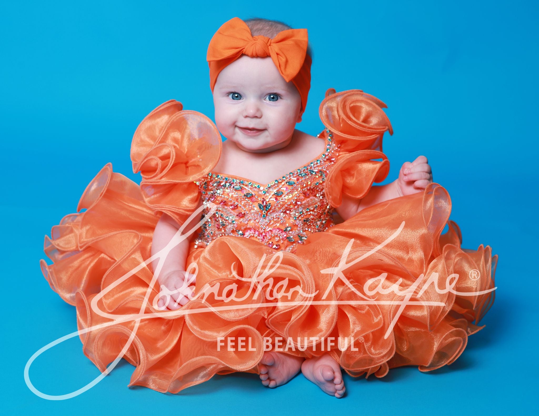 Bring out the sparkle with the Zahra Cupcake Dress from Sugar Kayne. This electrifying design features a richly beaded bodice in brilliant multicolor gems and voluminous ruffled skirt layers for the ultimate pageant-ready silhouette. Dramatic puff cap sleeves add an extra wow factor, while the deep V-back detail adds charm from every angle. Available in Barbie Pink, Neon Orange, Seafoam, and White, this showstopping dress is perfect for babies and toddlers competing in pageants or celebrating a big milestone in style.
