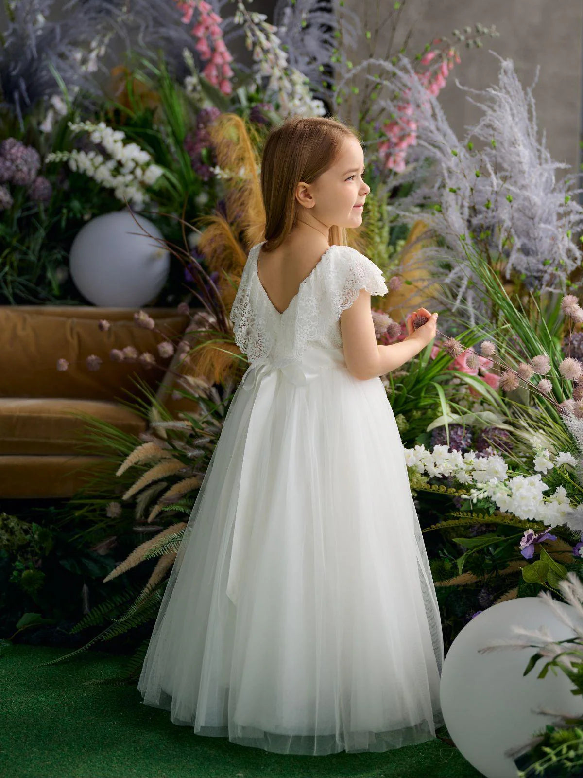 Teter Warm Girls Empire Waist Tulle Lace Wedding Flower Girl Communion Dress