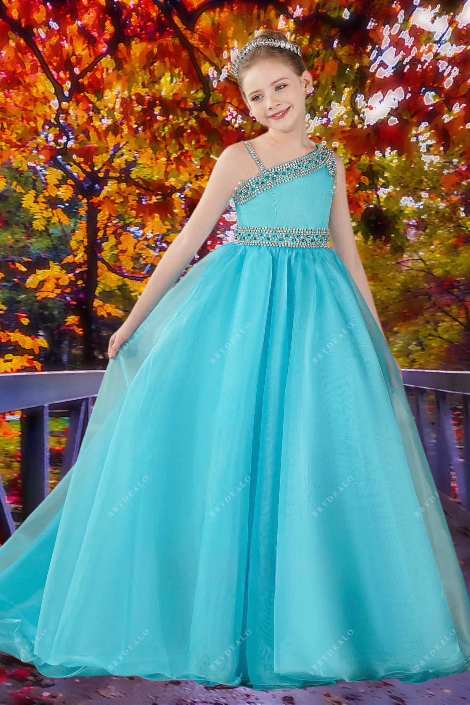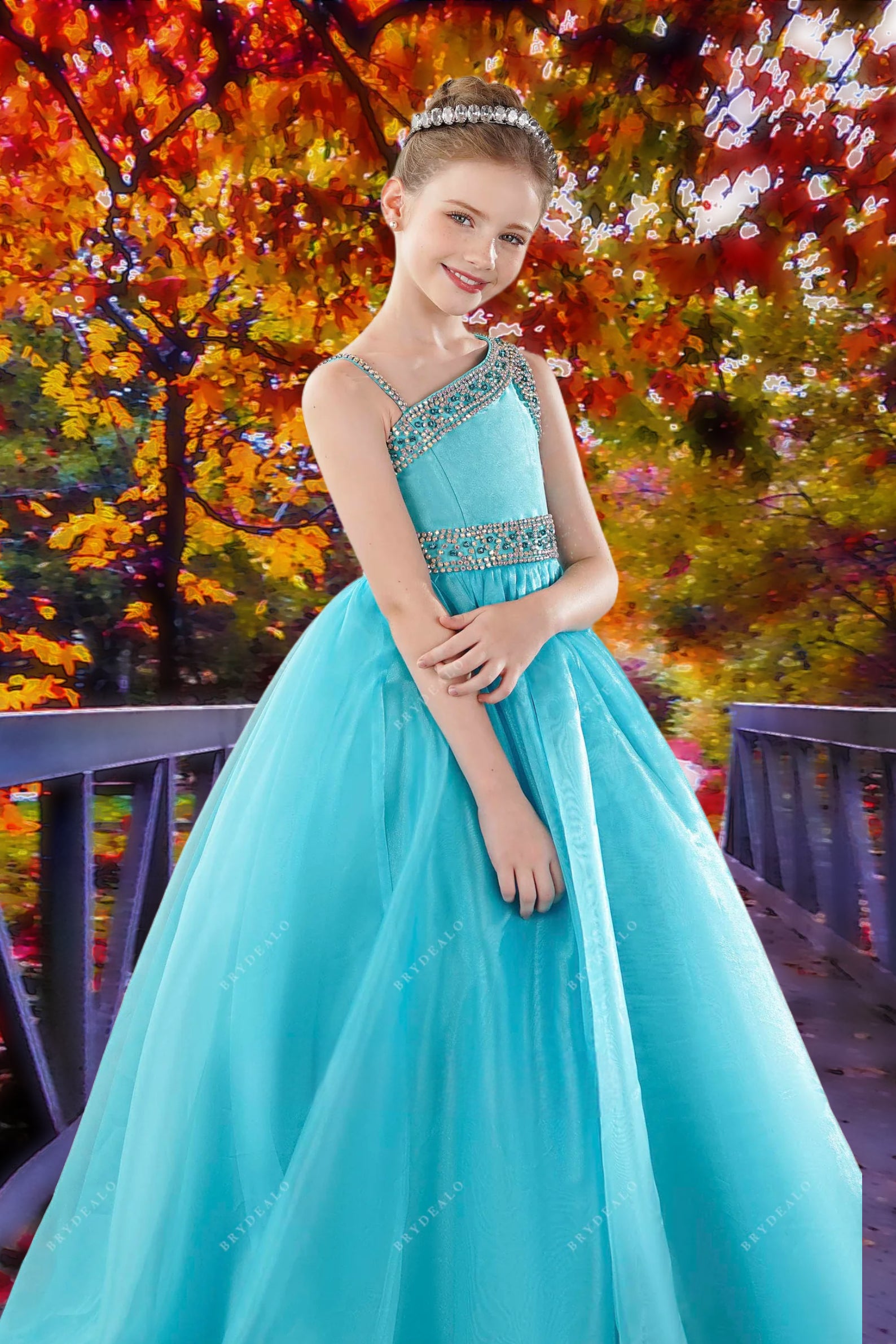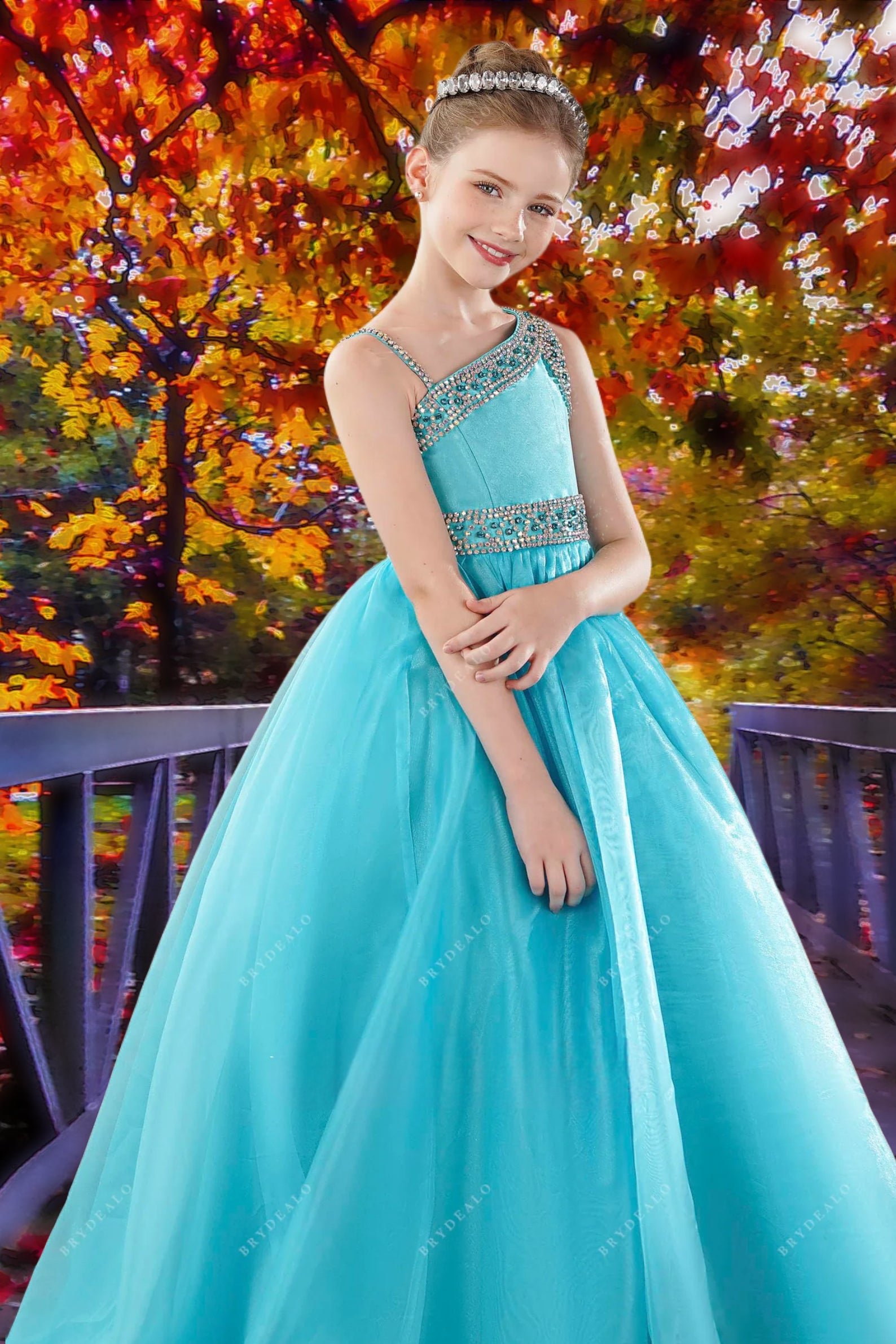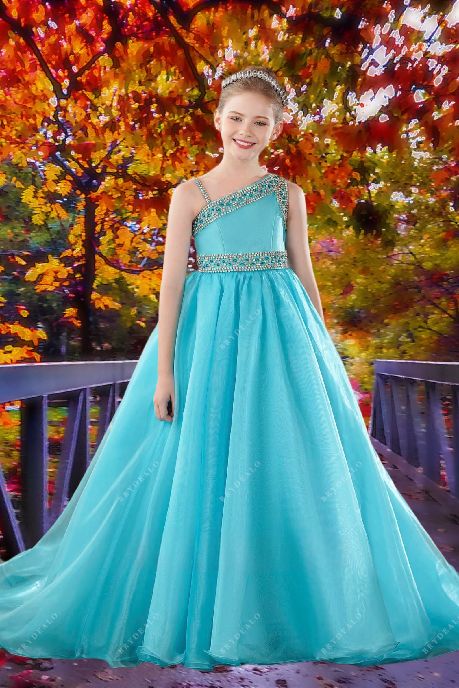 Turquoise One-Shoulder Girls Pageant Dress – Brydealo Couture