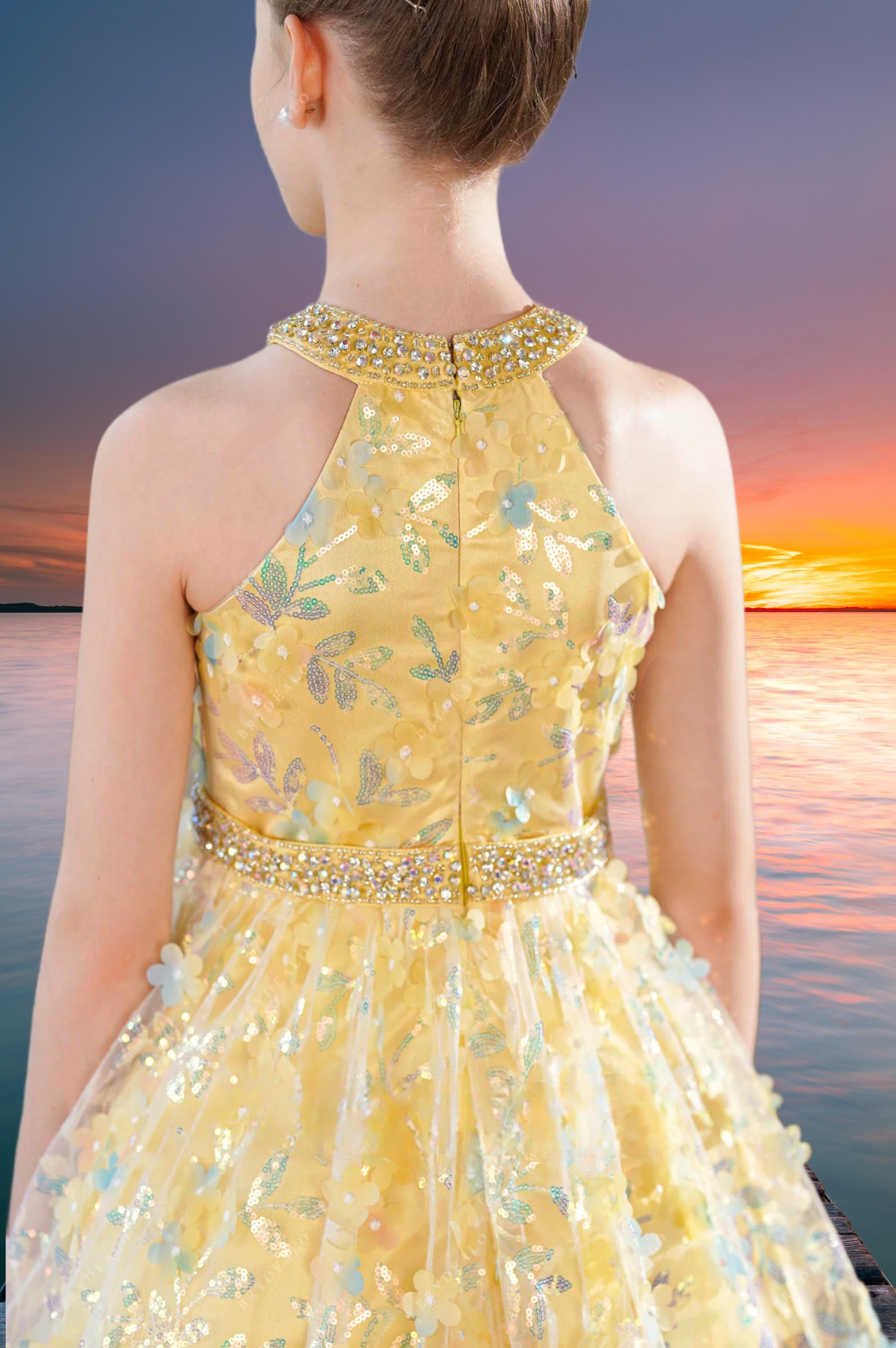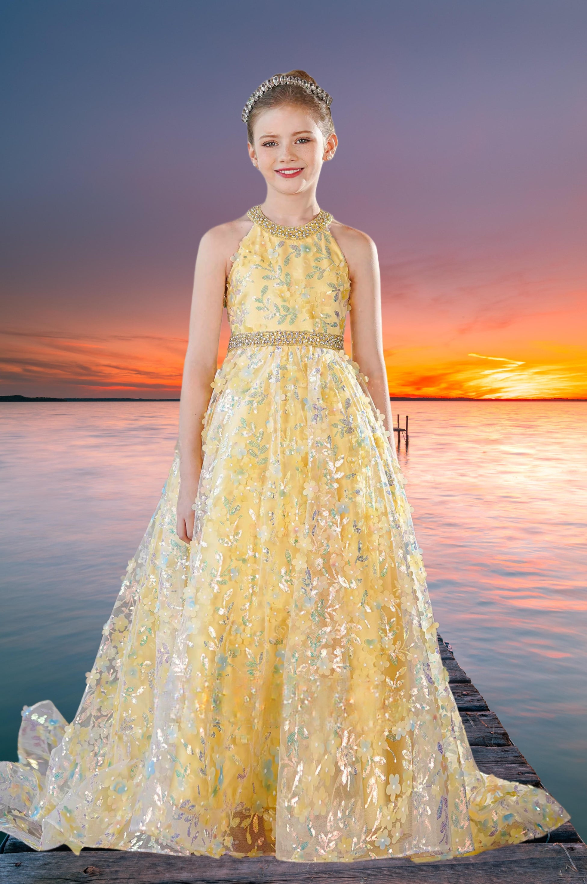 Yellow Sequin Floral Pageant Dress - Brydealo Couture